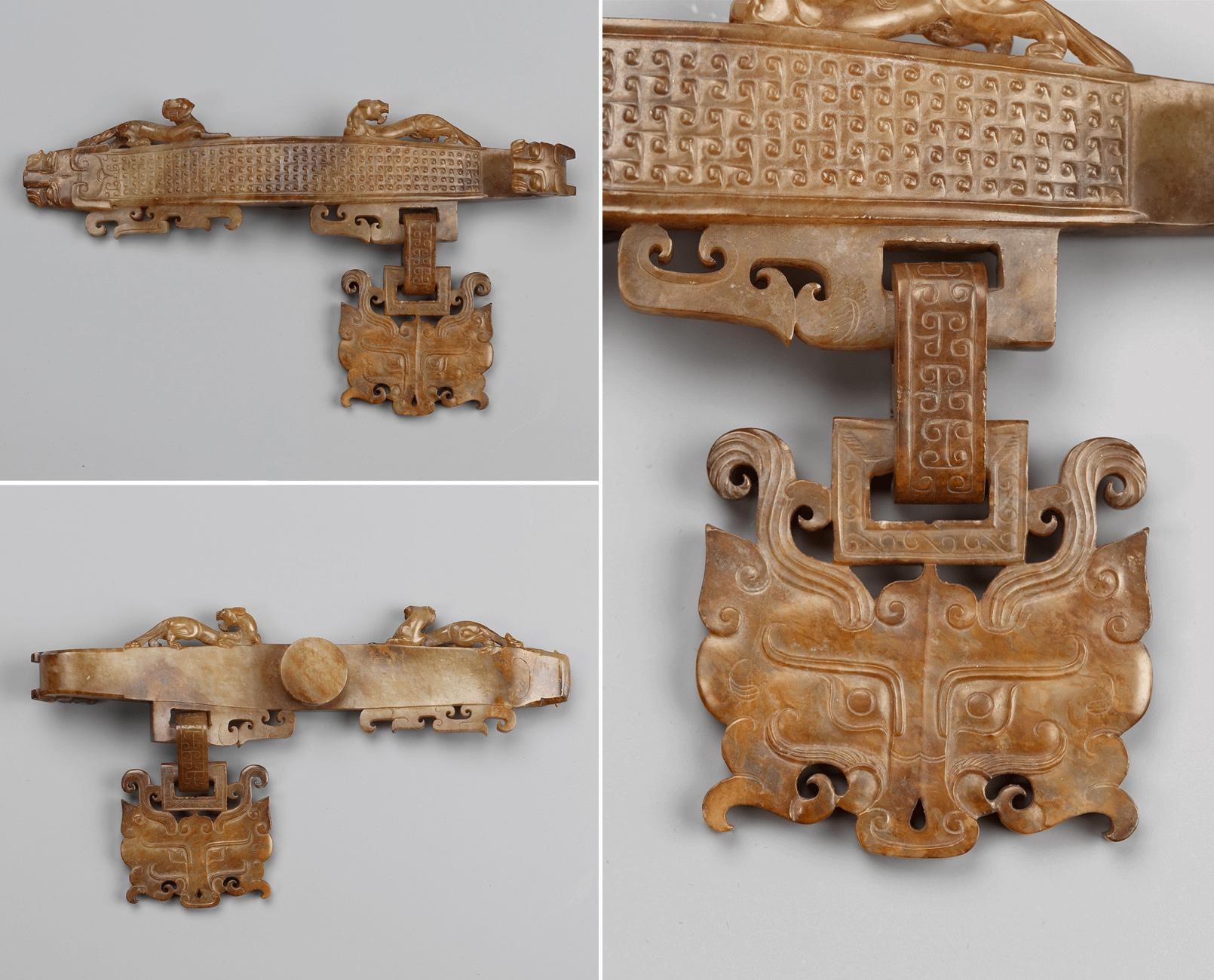 Belt hook with monster face pendant, carved from a single piece of jade. China, Warring States period, 475–221 BC [1610×1300] by MunakataSennin