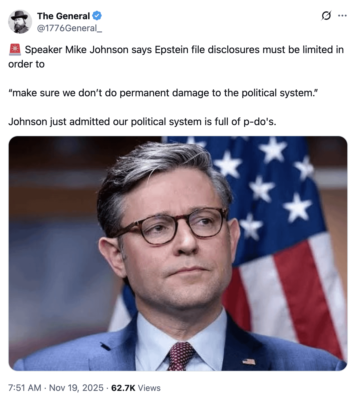 Mike Johnson keeps saying “we need to protect victims” when he means the rapists and people who took money from Epstein. We see right through this fucker!