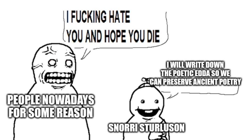 People dump on Snorri and have absolute crash outs when you ask them for their sources on why he’s not reliable. Or, god forbid you hit them with some of your own sources, challenging, dispelling and disproving historical misinformation/disinformation/misconceptions.