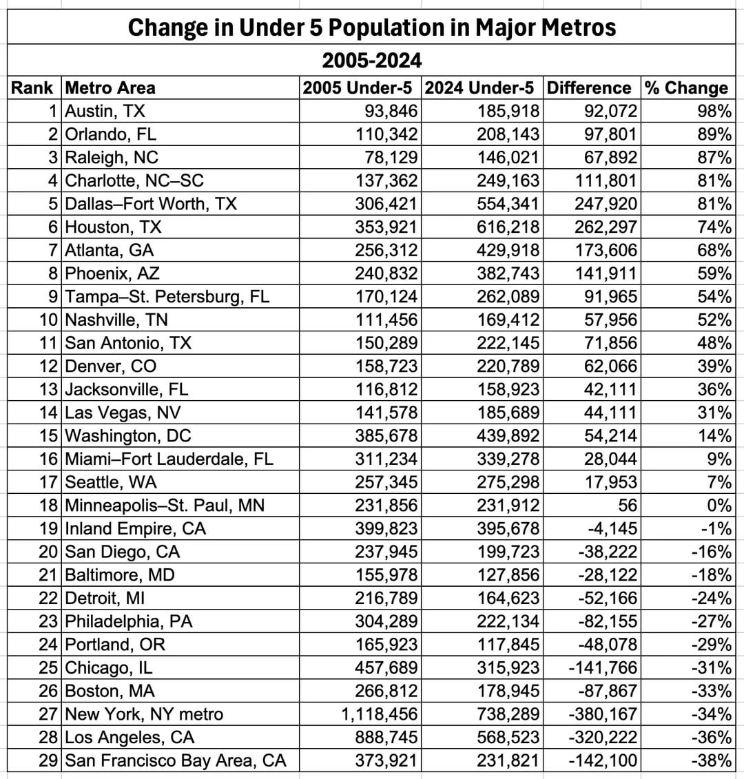 People are so quick to believe this kind of "data" without contemplating what you'd see if these shifts actually happened. E.g. Austin ISD + Charter enrollment dropped from 93,000 in 2011 to 88,000 in 2024: https://www.statesman.com/news/education/article/austin-isd-enrollment-drops-30-year-low-21112244.php