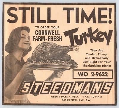 Still time! Steedman’s Grocery store taking orders for turkeys ad! 1963 Battle Creek Michigan. 🦃 by AxlCobainVedder