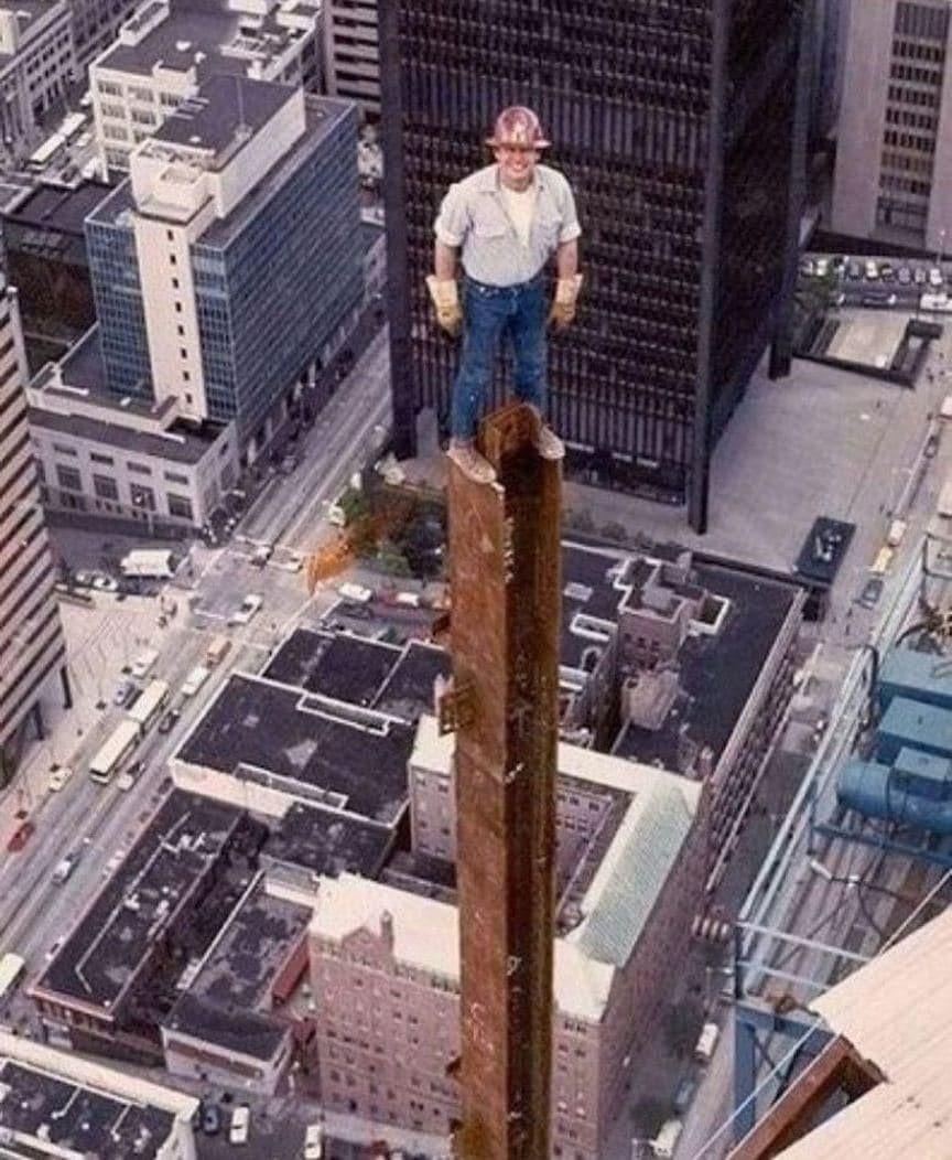 Judging by his looks, he probably raised that girder himself, all while standing on it.