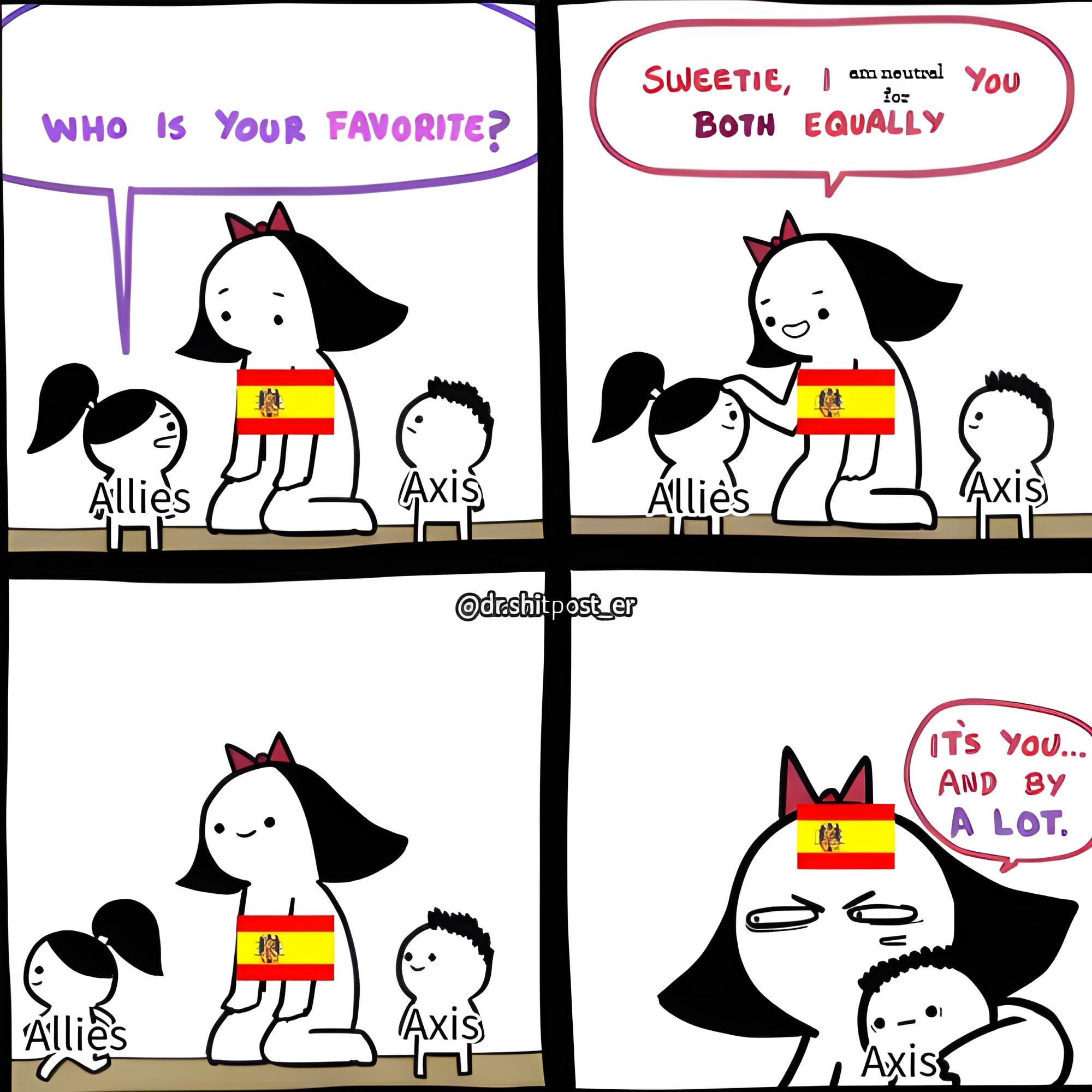 1. Listen, Franco was a prick, but the Allies weren’t going to swarm across his open border. And before you mention the Blue division, 20k Spaniards were a small price to pay to a guy like Franco (who, I have noted was a prick). He had zero good choices.