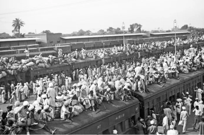 Thousands of refugees crowd aboard border trains during the India-Pakistan Partition following independence from Britain. Amritsar, Punjab. August 1947. [740×500]