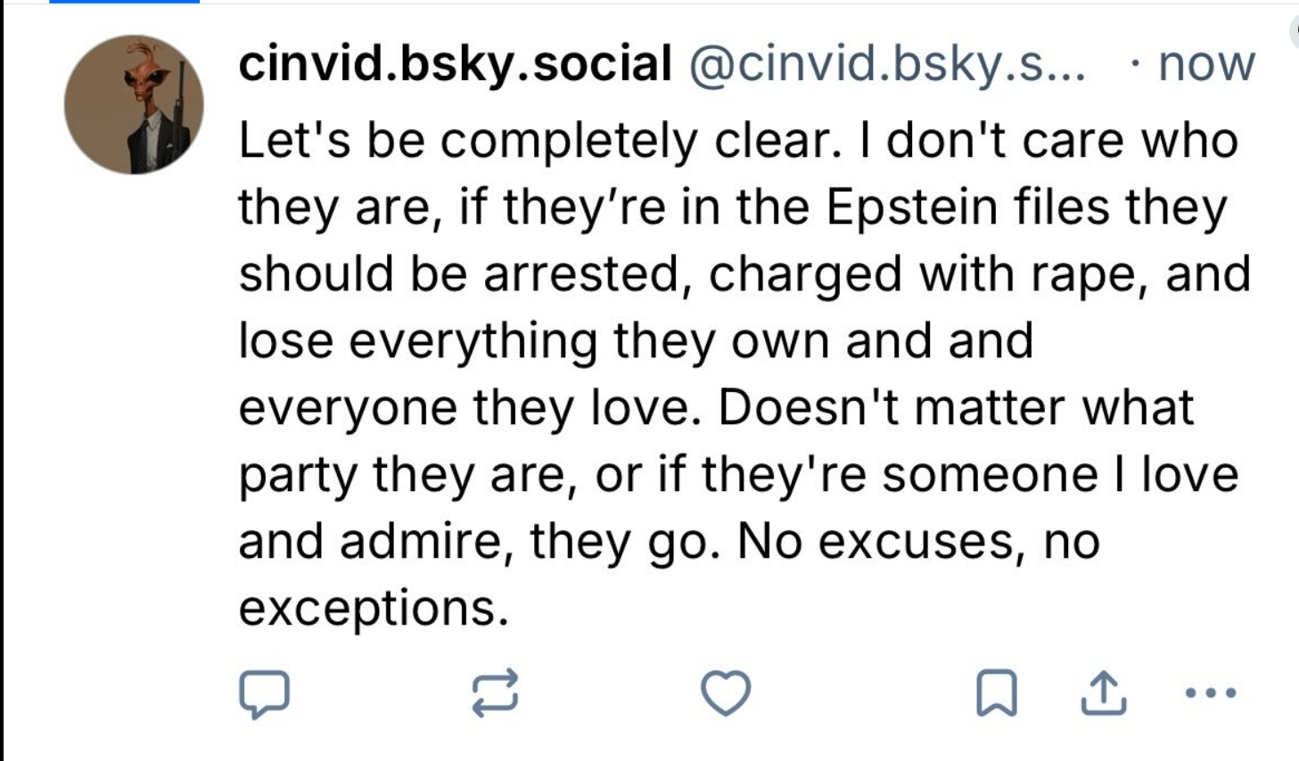 Toadliquor138 on November 23, 2025 3:20 am I still don’t understand how protecting a bunch of vile perverts has anything to do with National Security. And we know it has nothing to do with our “international image” since we’re basically the world laughing stock.