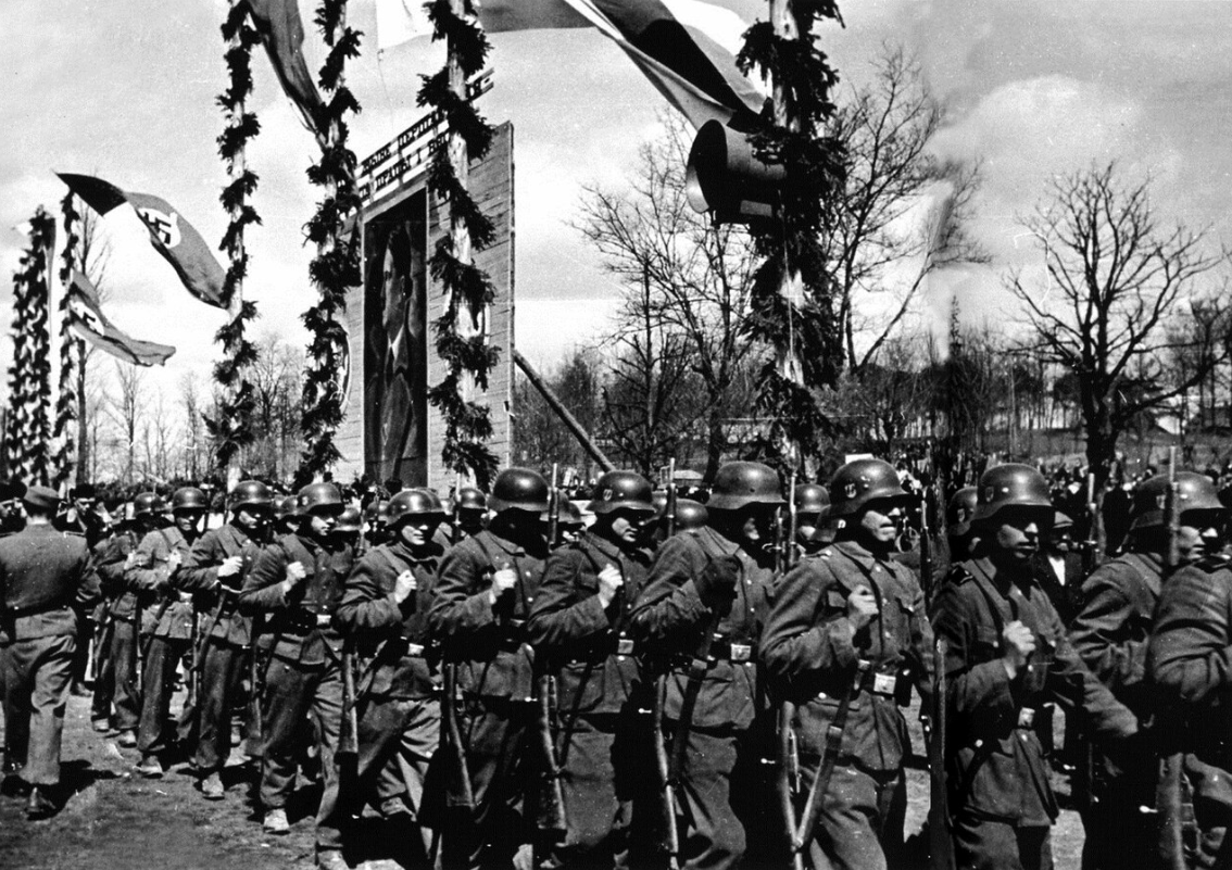Legionnaires of the 13th Belarusian SD Police Battalion at a parade in Minsk, May 1, 1943 or 44. [630×700] by Competitive-Nerve782