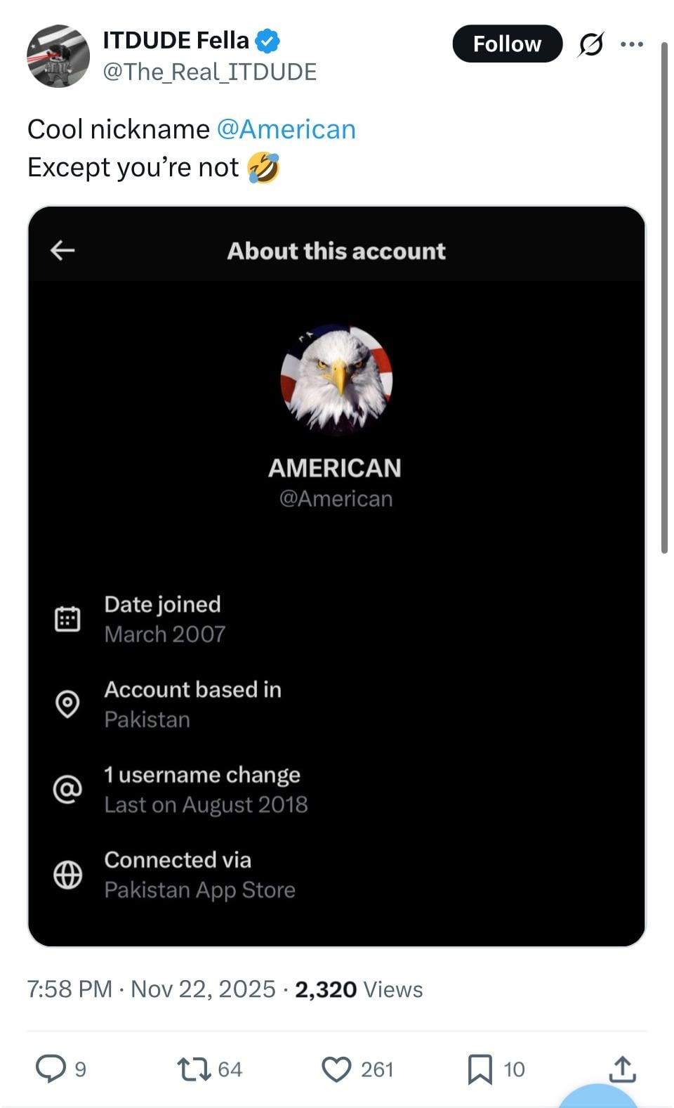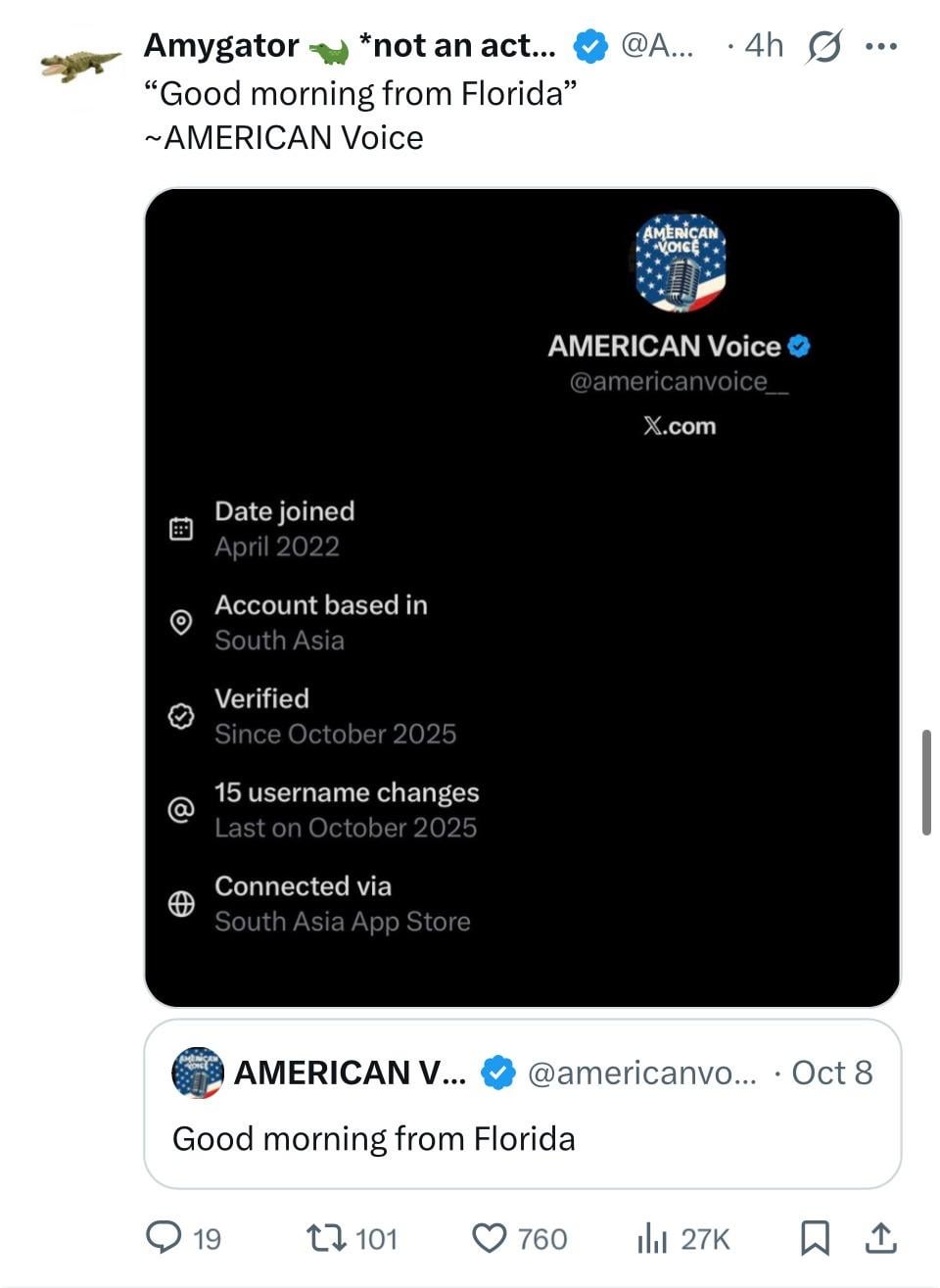 “Good morning from Florida” tweets the MAGA account American Voice… from South Asia