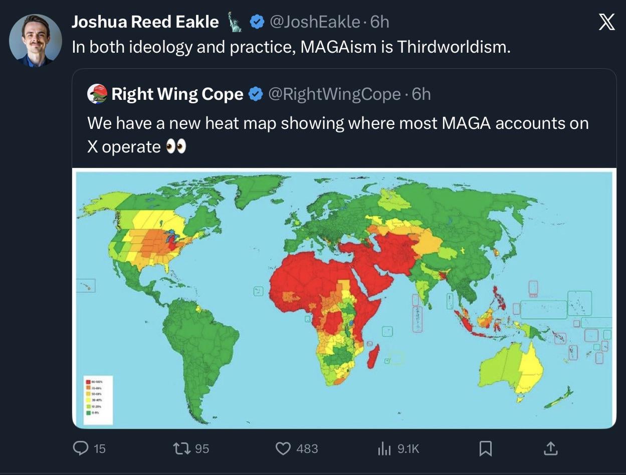 Makes sense when you realise a lot of the MAGA ideology online is just a repackaged societal attitudes from developing nations