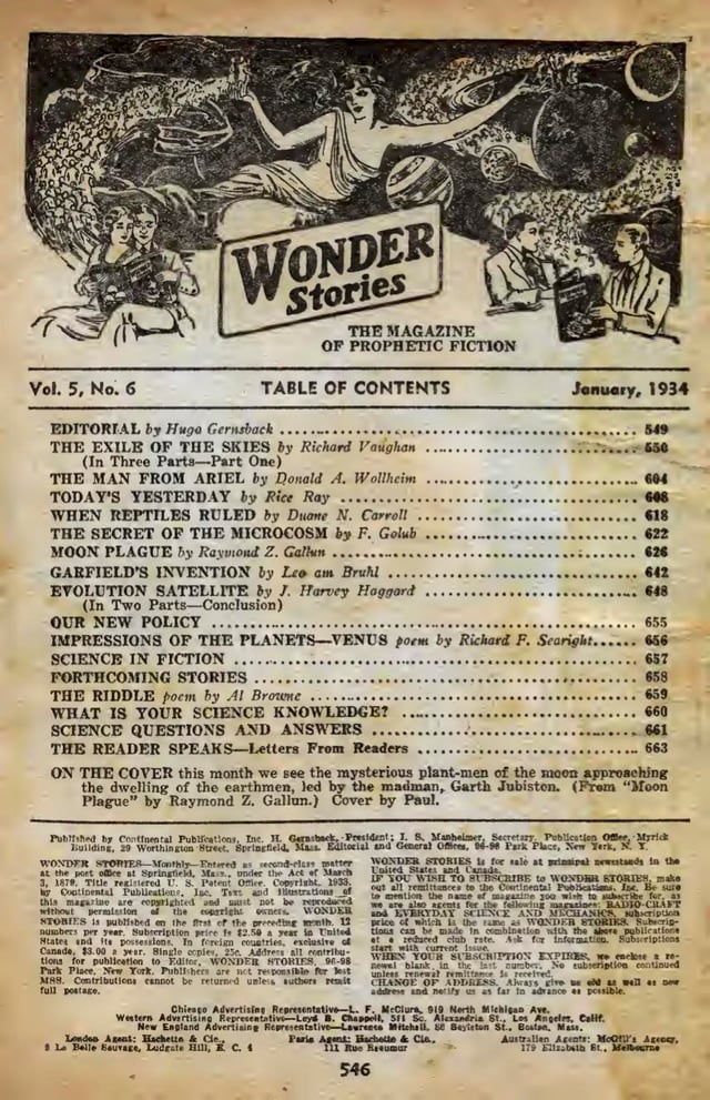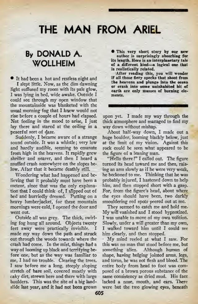 Illustration by Paul (Frank R. Paul) for "The Man from Ariel," by Donald A. Wollheim, published in Wonder Stories, January 1934.