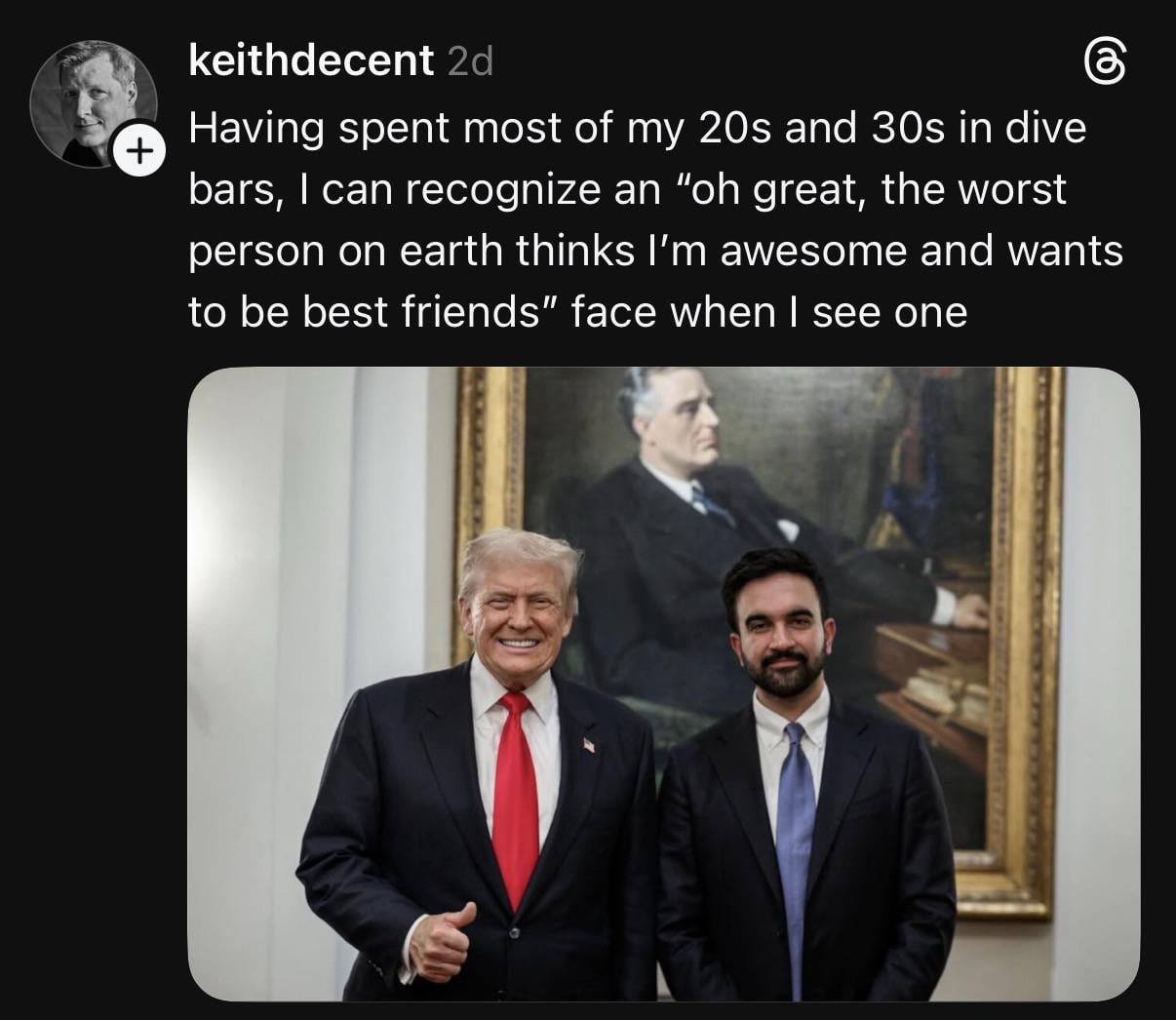 I’m pleased that Mamdani chose not to copy the inane thumbs up gesture.