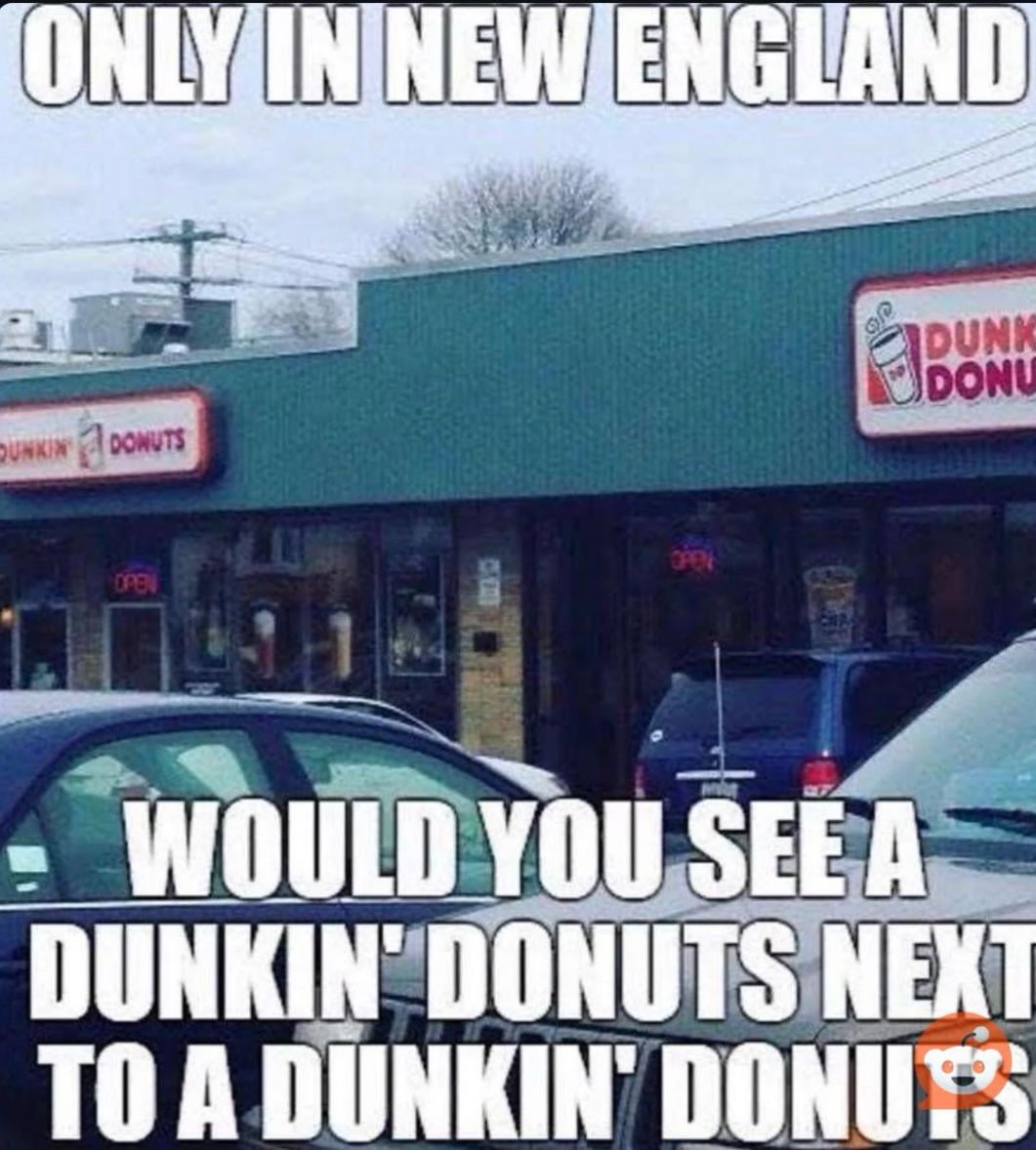 7. I don’t know if this is a real or fake picture, I did some searching and the closest 2 Dunkin Donuts are across the street from each other in Revere, MA (Squire Rd) 120 feet away.
