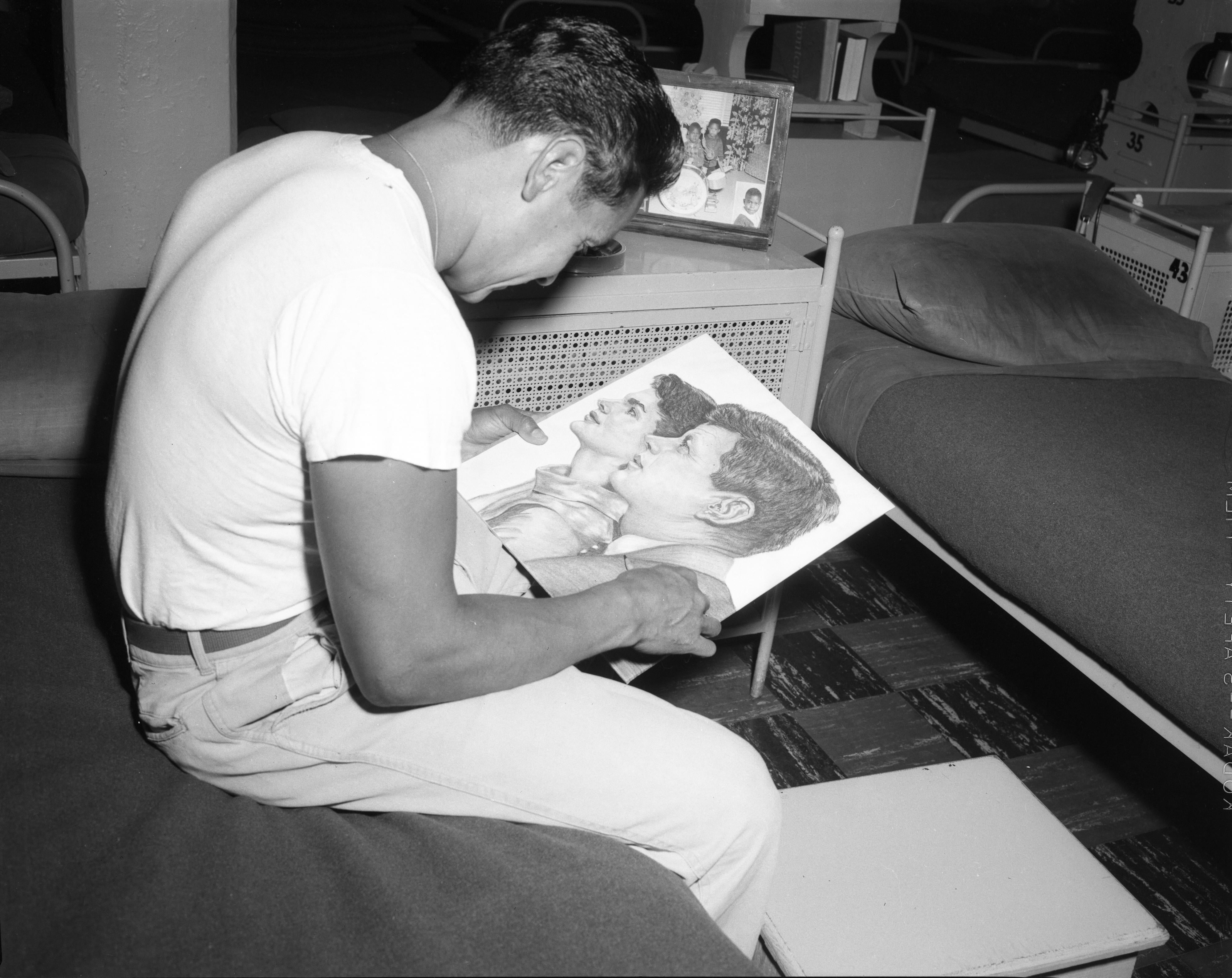 A prisoner being held at the McNeil Island Prison — a prison island in Washington state — draws a picture of John and Jacqueline Kennedy in July 1961. by Awkward_Lifeguard989