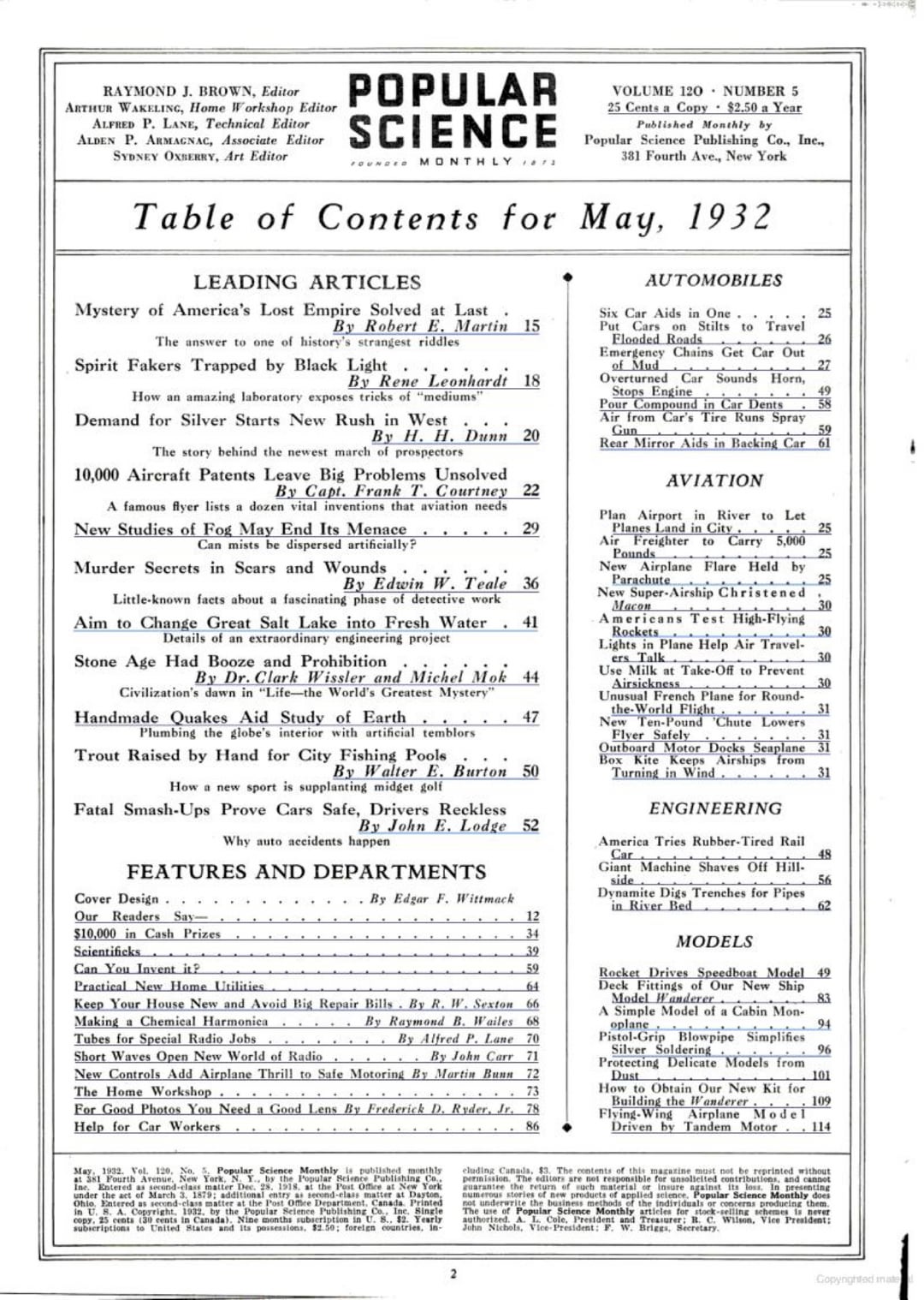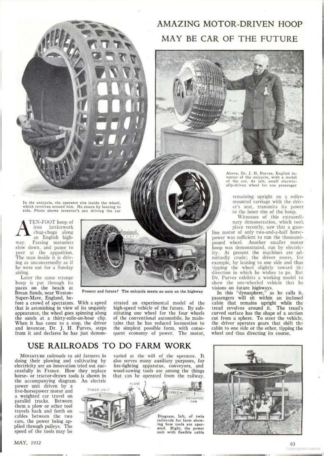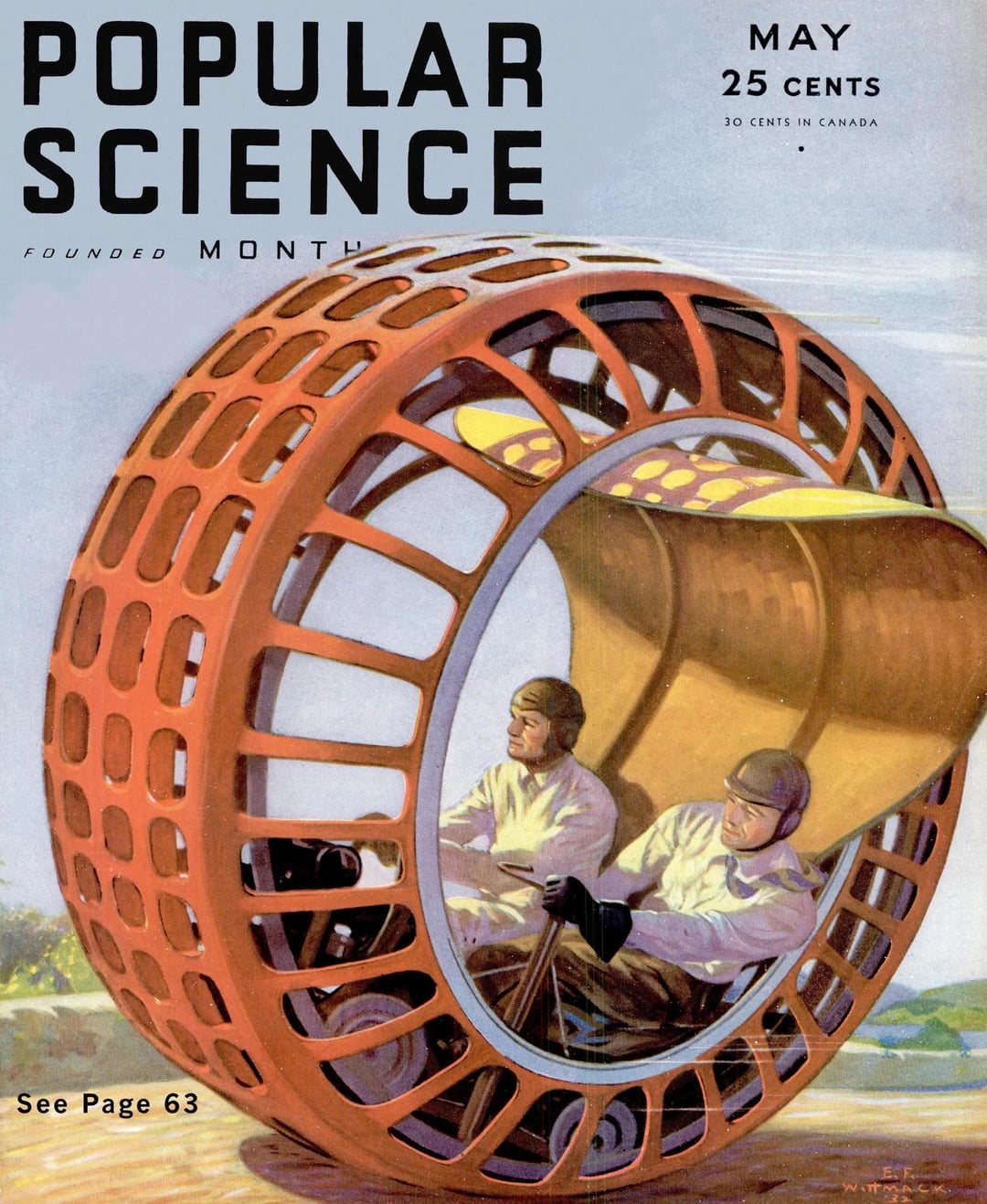Popular Science, May 1932. Cover art by Edgar F. Wittmack featuring a "dynasphere." by woulditkillyoutolift