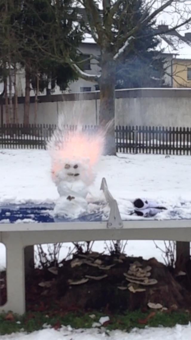 When we were kids we put a fire cracker in a little snowman and I took a perfectly timed picture by iggiboi
