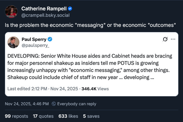 A change of staff isn’t going to help his messaging on an economy that he ruined.