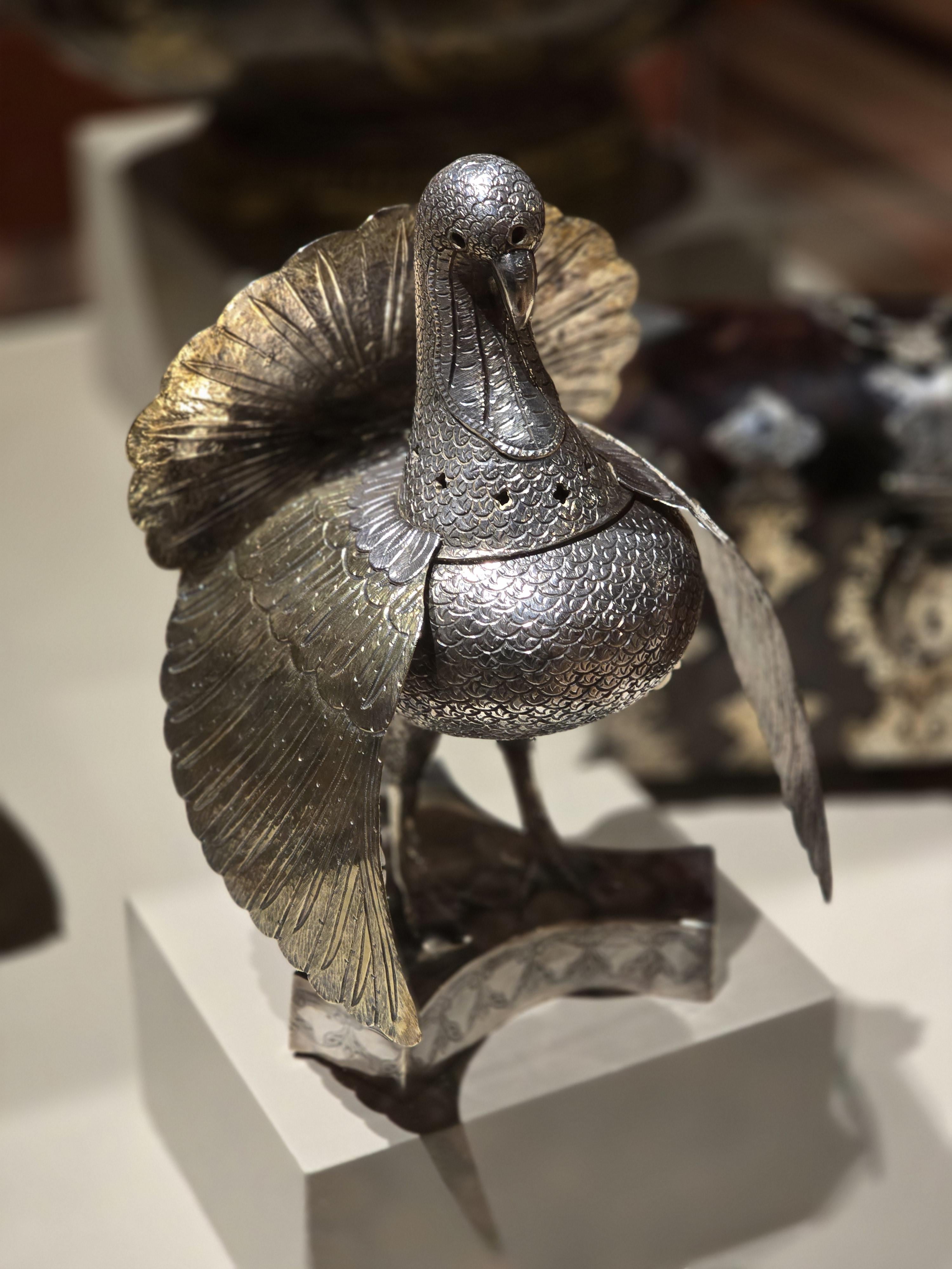 Incense or perfume burner in the shape of a turkey. Buenos Aires, Argentina, 18th c. Silver parcel gilt. The Hispanic Society of America collection [3000×4000] [OC]