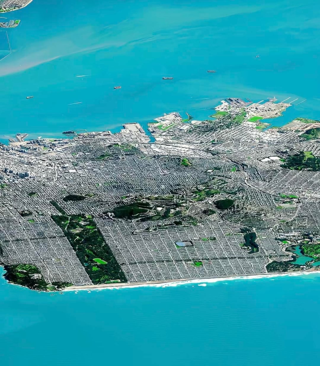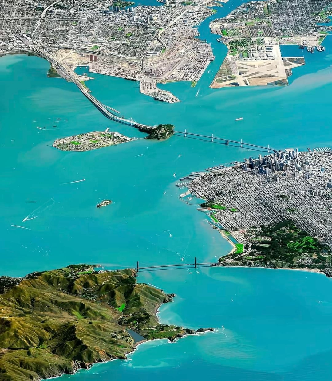 In the first photo, see that little triangle at the bottom edge of that former airport on the upper right side? That’s part of San Francisco. In the East Bay.