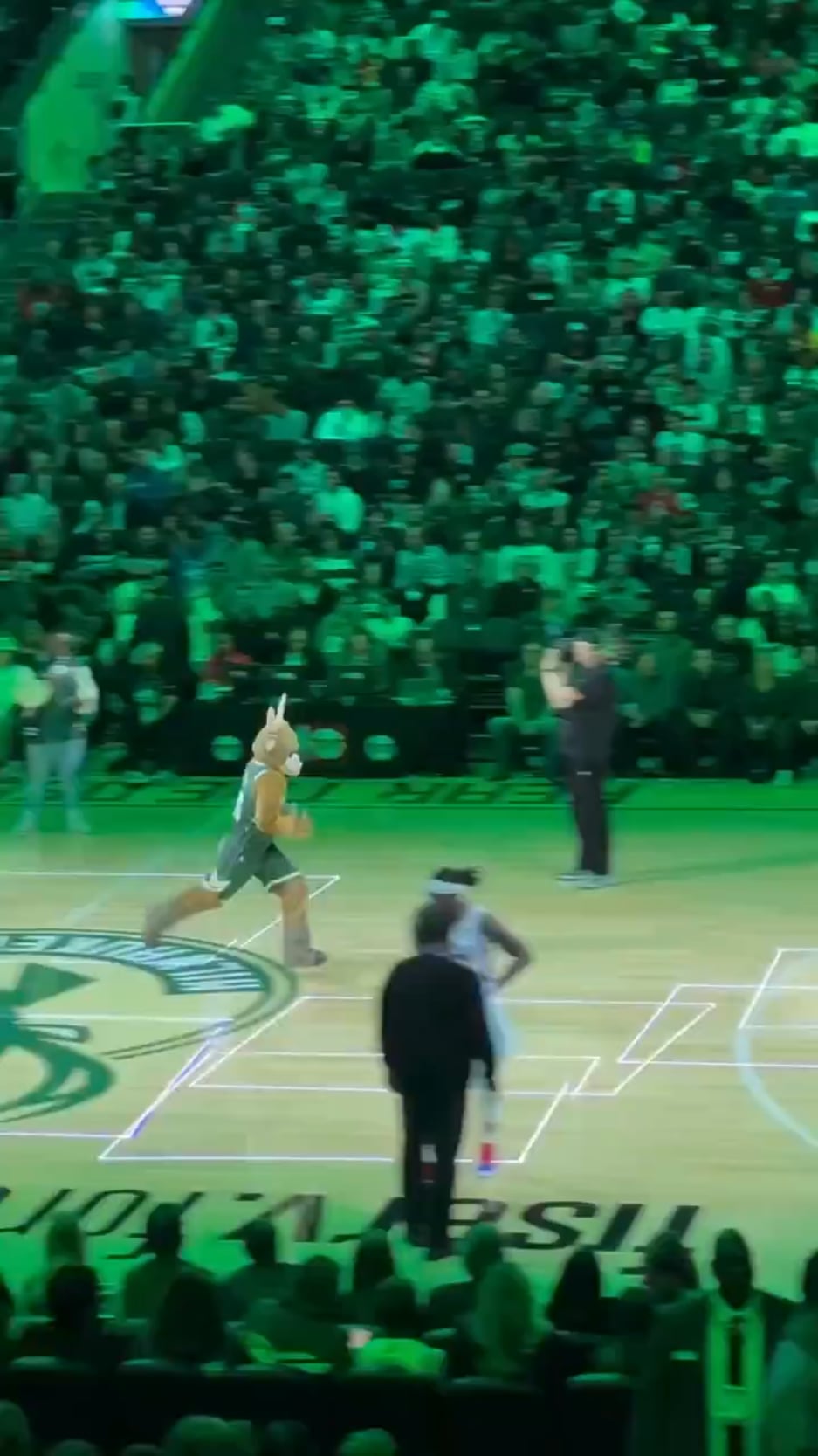 Mascot spinning like crazy.