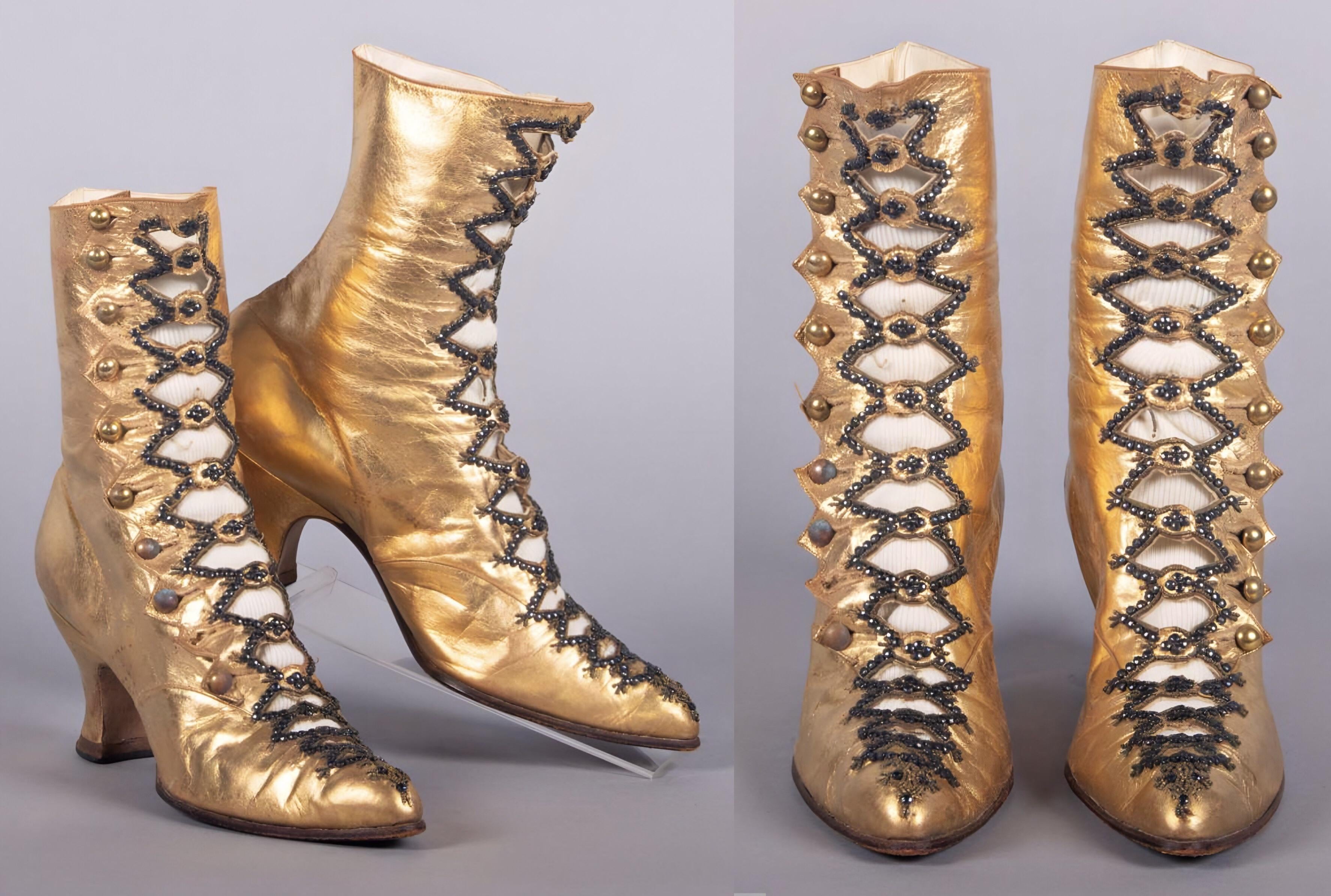 Embroidered Gold Kid Ladies Boots, 1890s [3552 x 2393]