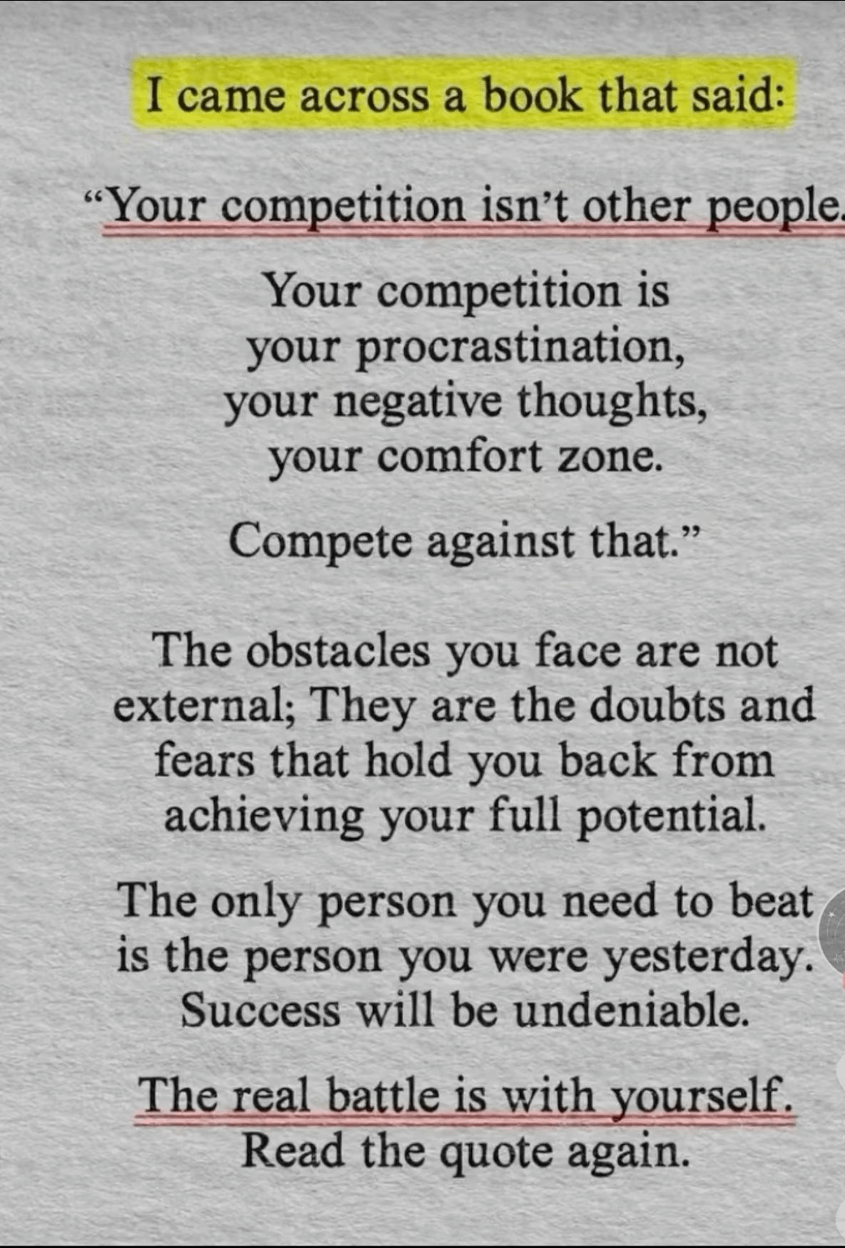 [IMAGE] Needed this reminder today the only person I am racing is the version of me from yesterday by These-Spring-72