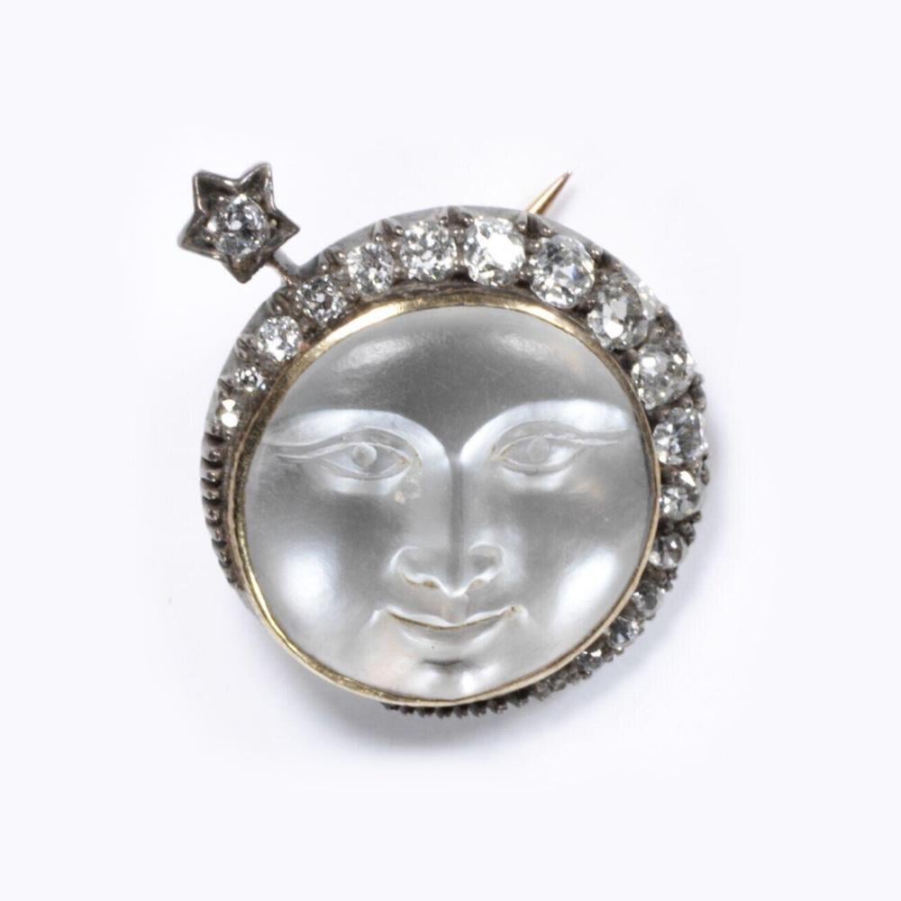 Moonstone brooch shaped like a man in the moon, framed with diamonds. England, 1888 [1000×1000] by MunakataSennin