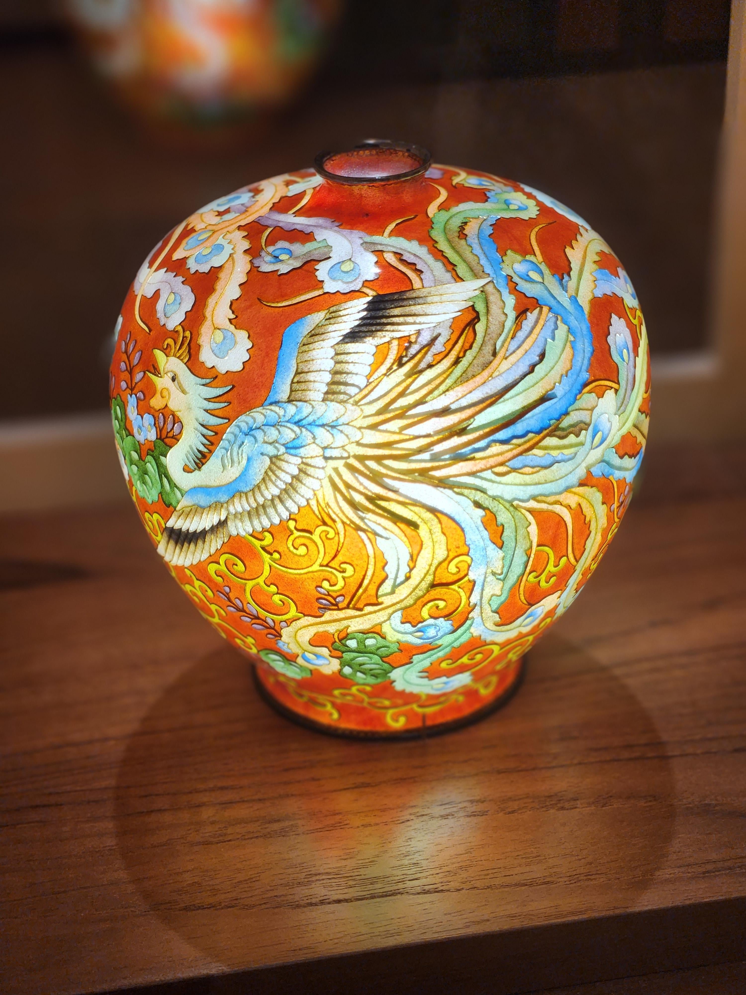 Lamp globe with phoenix by Hattori Tadasaburō. Plique-à-jour enamels. Japan, ca. 1910. Loaned to the Asia Society Museum [3000×4000] [OC]