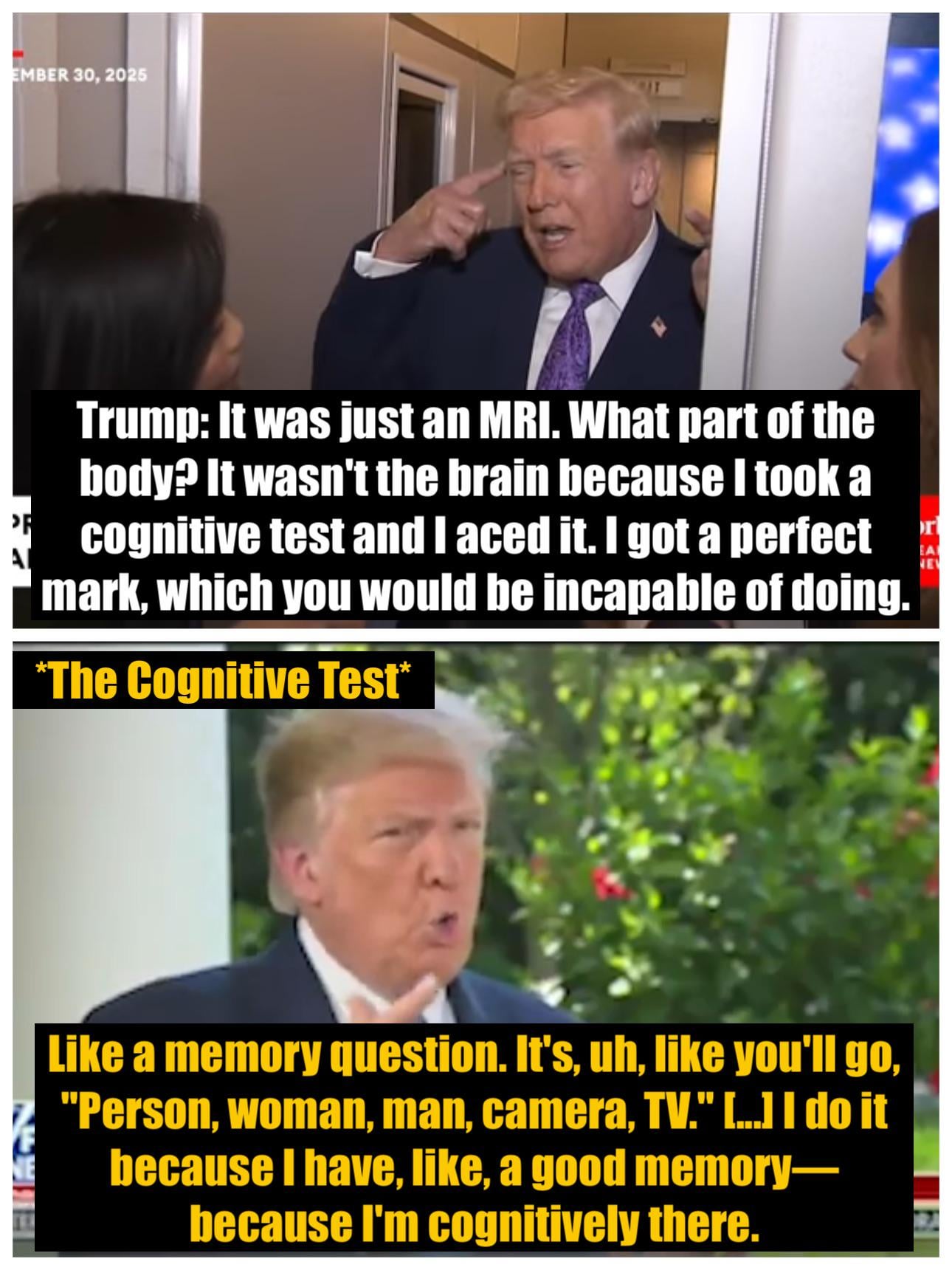 Trump says reporter is incapable of getting a “perfect mark” on cognitive test… again fails to understand it’s a screener for cognitive impairment