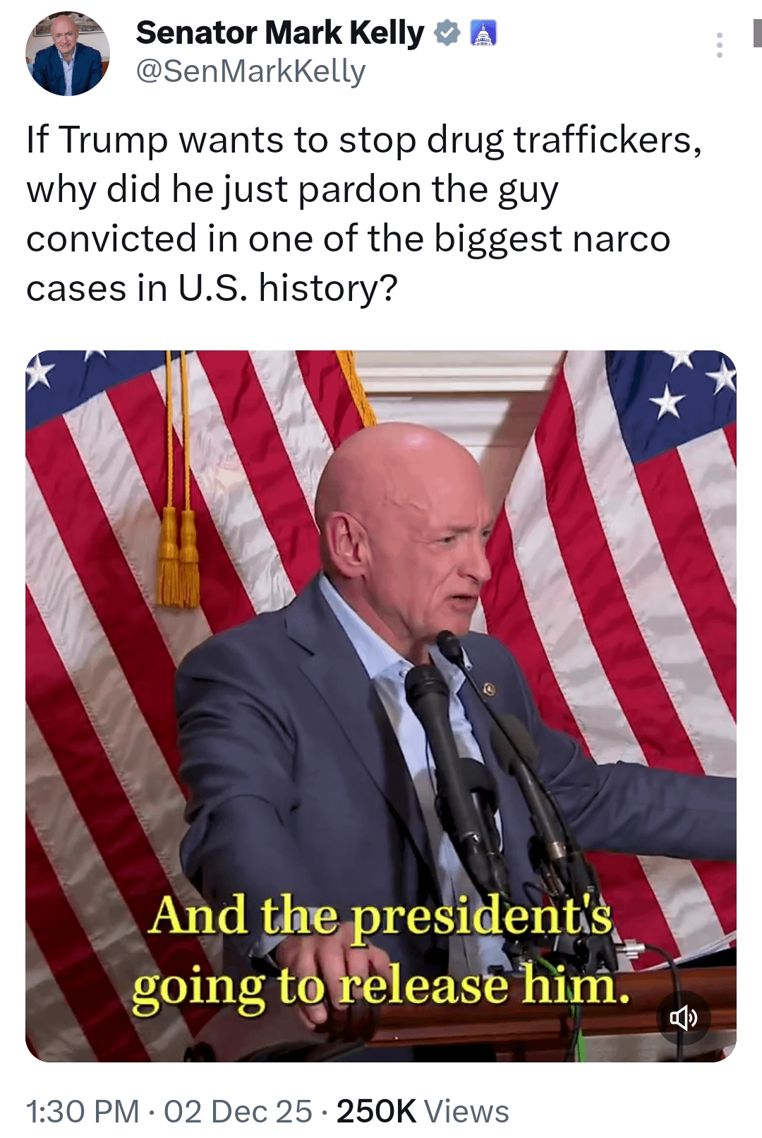 Hernandez trafficked 400 TONS into the US. That’s 800,000 POUNDS of cocaine. Trump is pardoning him. Trump is saying he’s blowing up (illegally) Venezuelans over drugs and now invading… but he’ll pardon Hernandez. Republicans are such fucking assholes.