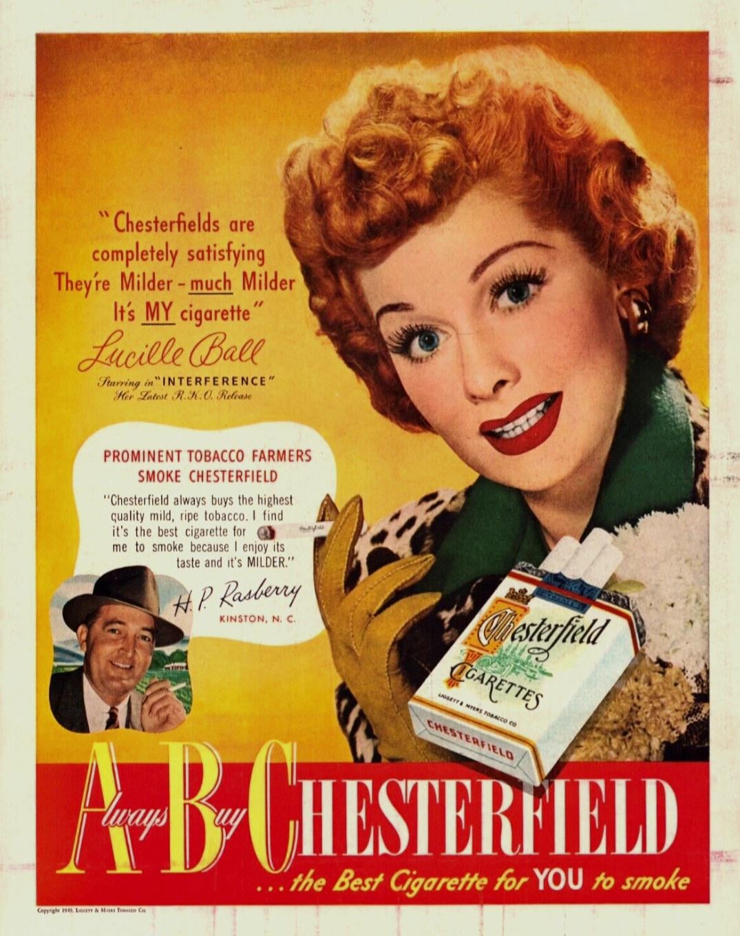 Chesterfield magazine ad featuring everyone’s favorite red head, Lucille Ball [1949]
