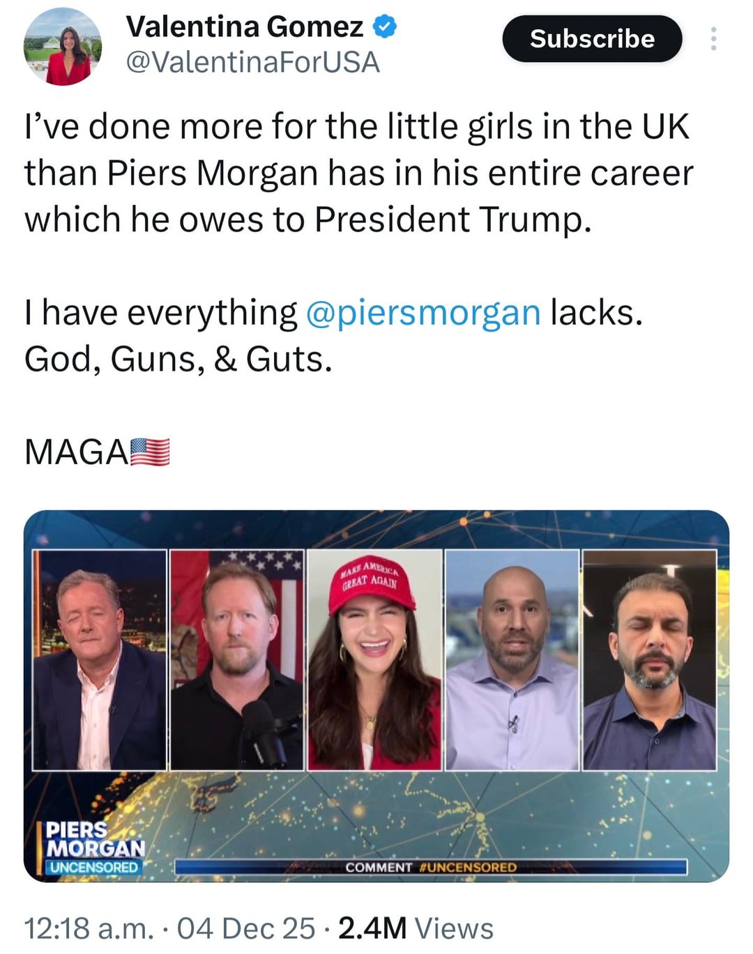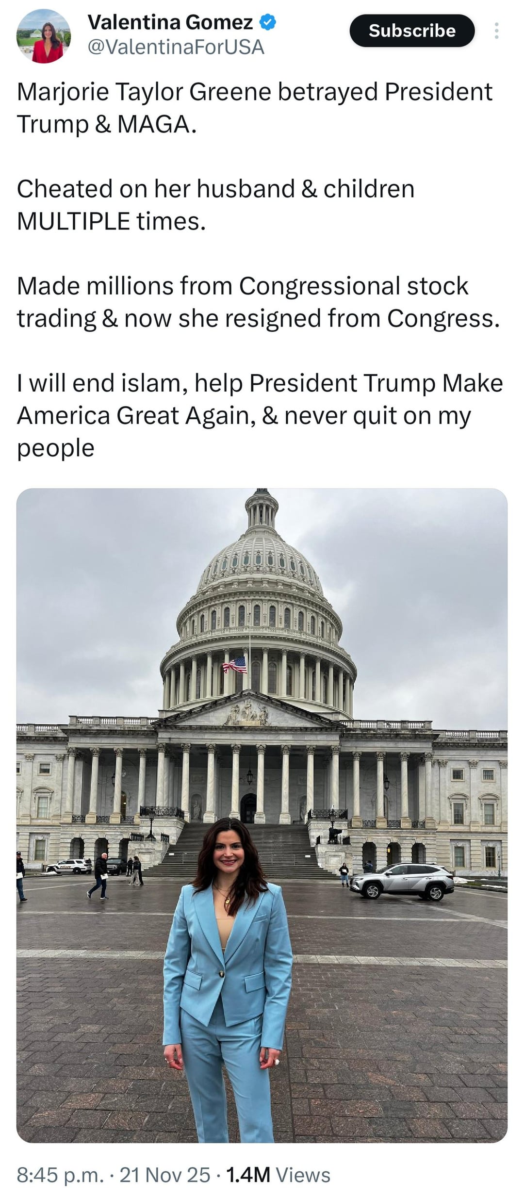 Just to be clear, this is where most MAGAs would prefer to see you Valentina. Not in Congress….