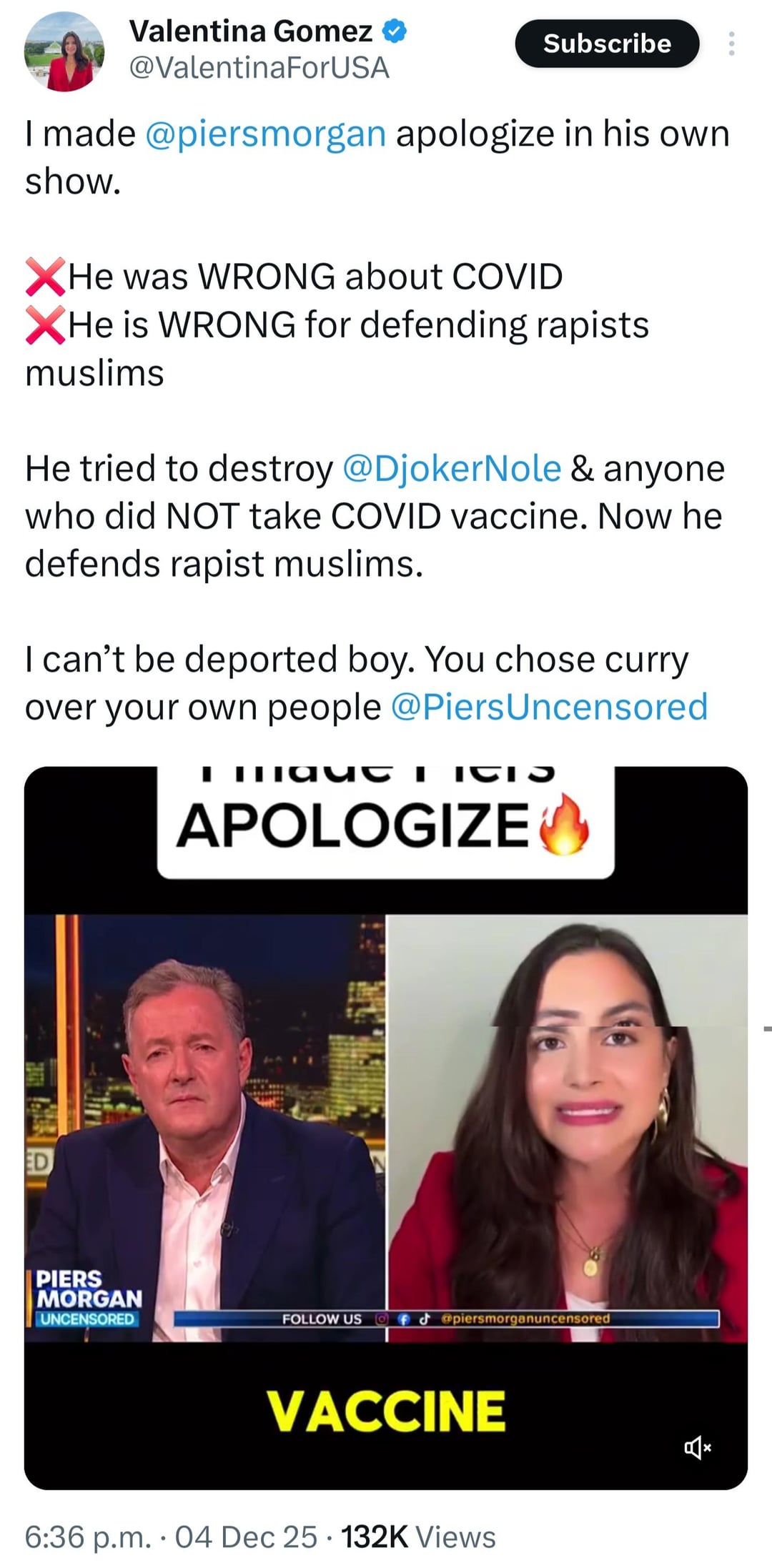 Piers Morgan destroyed her, she did Not make him apologize in the interview. Rarely agree with the man but his take on her was 100 accurate.