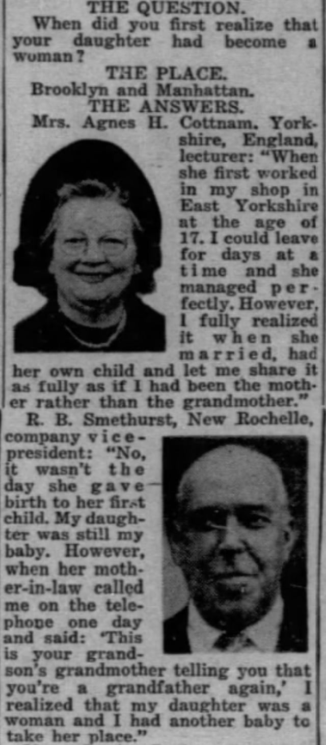 Inquiring Photographer asks:”When did you first realize that your daughter had become a woman?” February 27,1952 by CryptographerKey2847