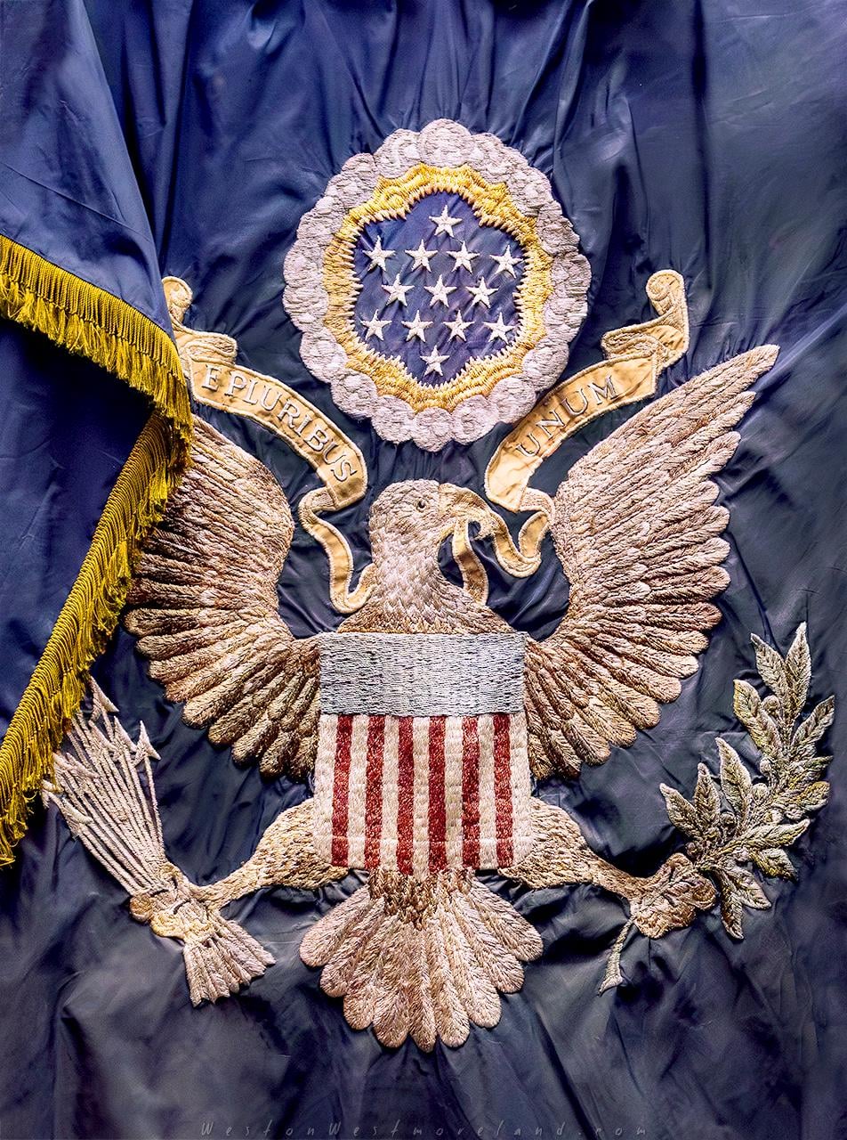 Embroidered US Infantry Regimental Colors of the First World War, c.1917. Military Museum, Brussels. It might be related to the 1st Infantry Division, known as the Big Red 1, which was organized in 1917 during WWI, but this fact is, at most, uncertain. [1280×952] [OC]