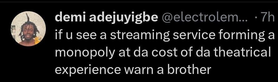 4. The cinema experience is already on hospice. With home setups getting better every year (even budget friendly setups) the *need* for the theater is waning. I can watch the same movie at home with friends for cheaper, with food that’s both better and likely better for you, and have access to pausing.
