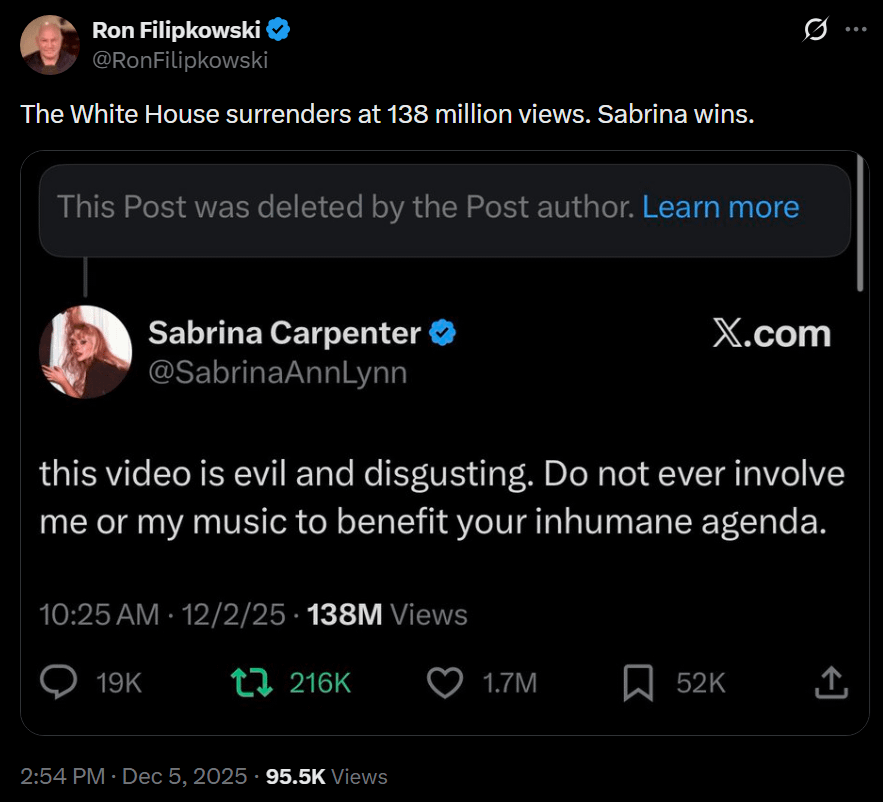Can’t wait for my 40 something year old coworker who is in love with Trump & Sabrina to suddenly say Sabrina’s music is shit