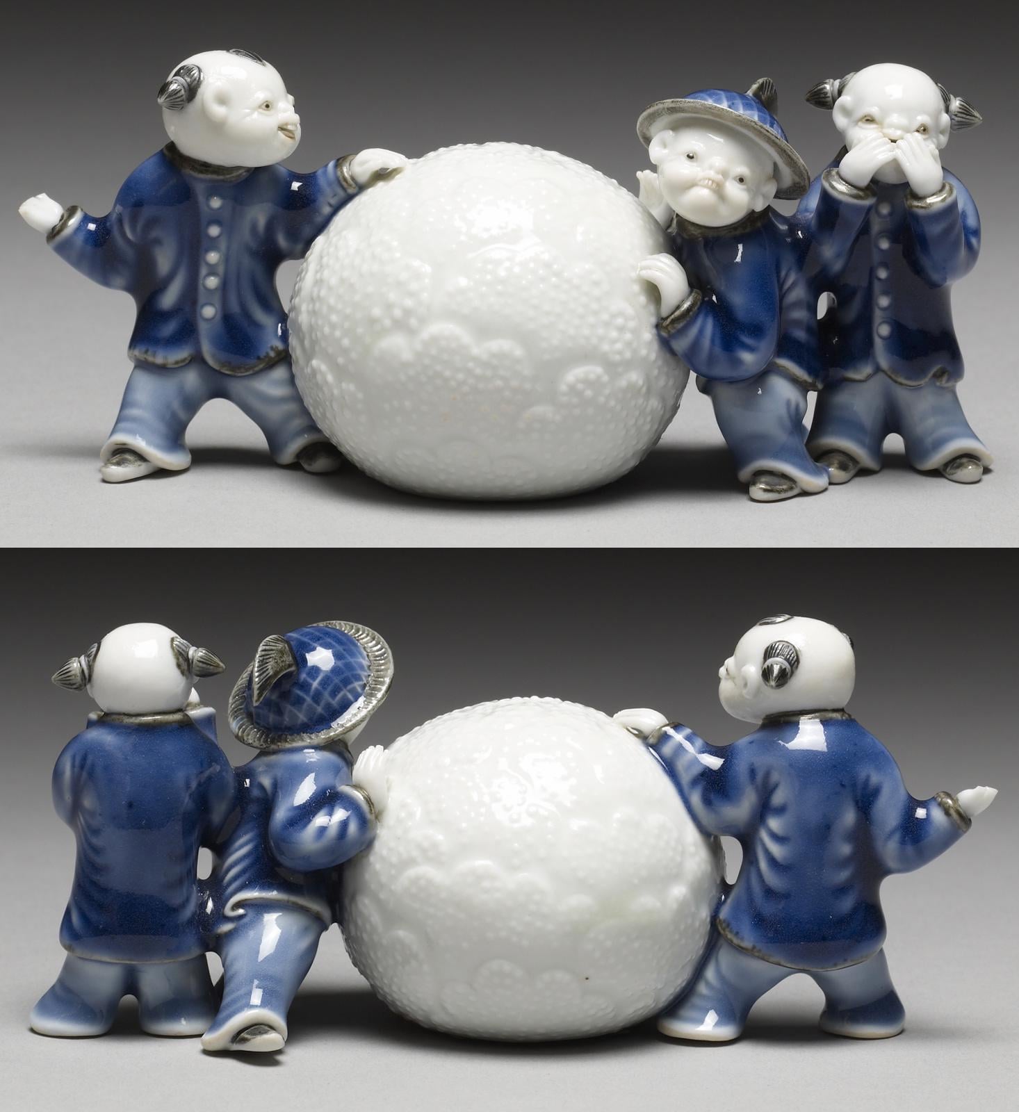 Porcelain brush rest in the form of three Chinese boys with a snowball. Japan, Edo period, 1800-1830 [1466×1600] by MunakataSennin