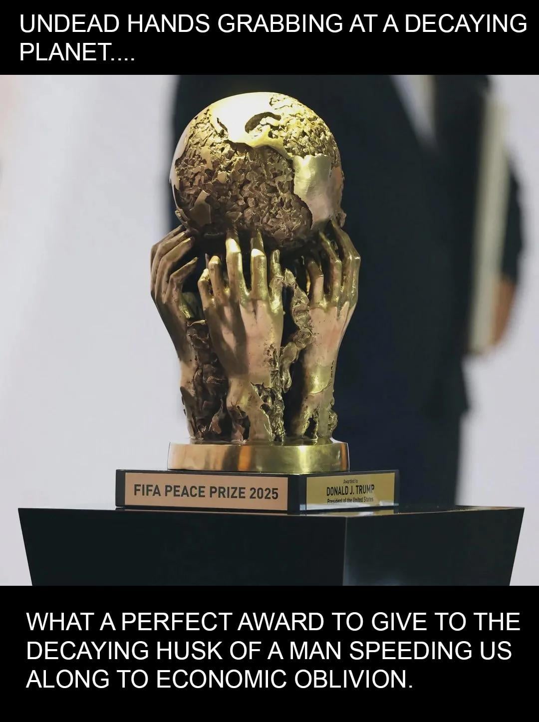 Rhedkiex on December 6, 2025 3:03 pm There’s something very wrong with a FIFA prize consisting of hands trying to grab a ball…