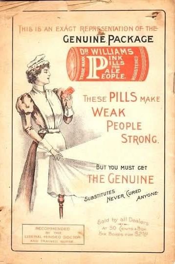 Huh. [and here they are ](https://en.wikipedia.org/wiki/Dr._Williams%27_Pink_Pills_for_Pale_People)