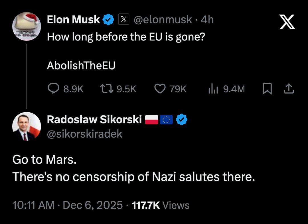 endorfan13 on December 7, 2025 5:56 am If anyone has a keen eye for nazis, it would be the Polish. I hope the neuralink shorts out and causes the advice to become Manchild’s new prime directive.