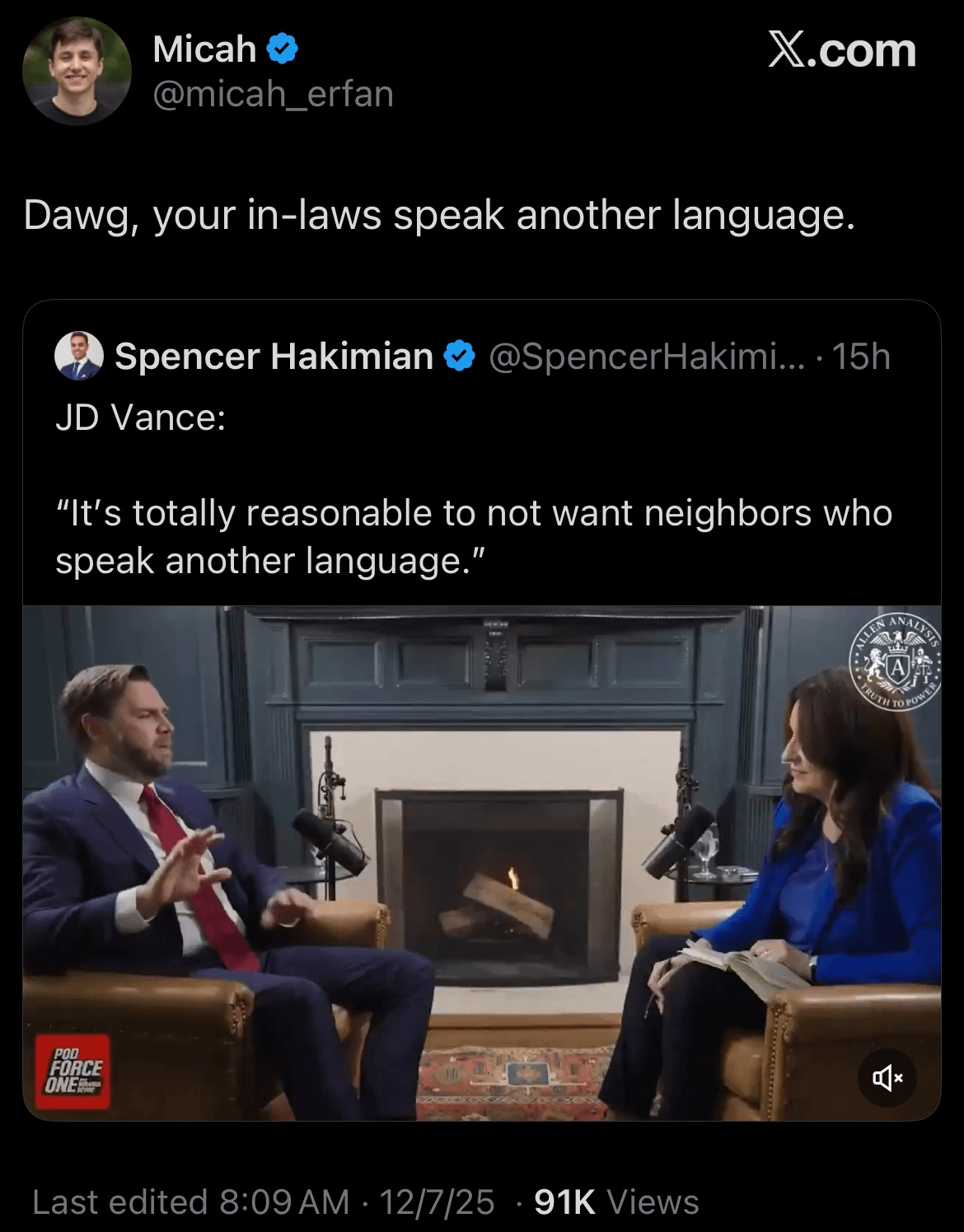His in-laws may speak another language, but it’s not like he’d want them to move into his neighborhood.
