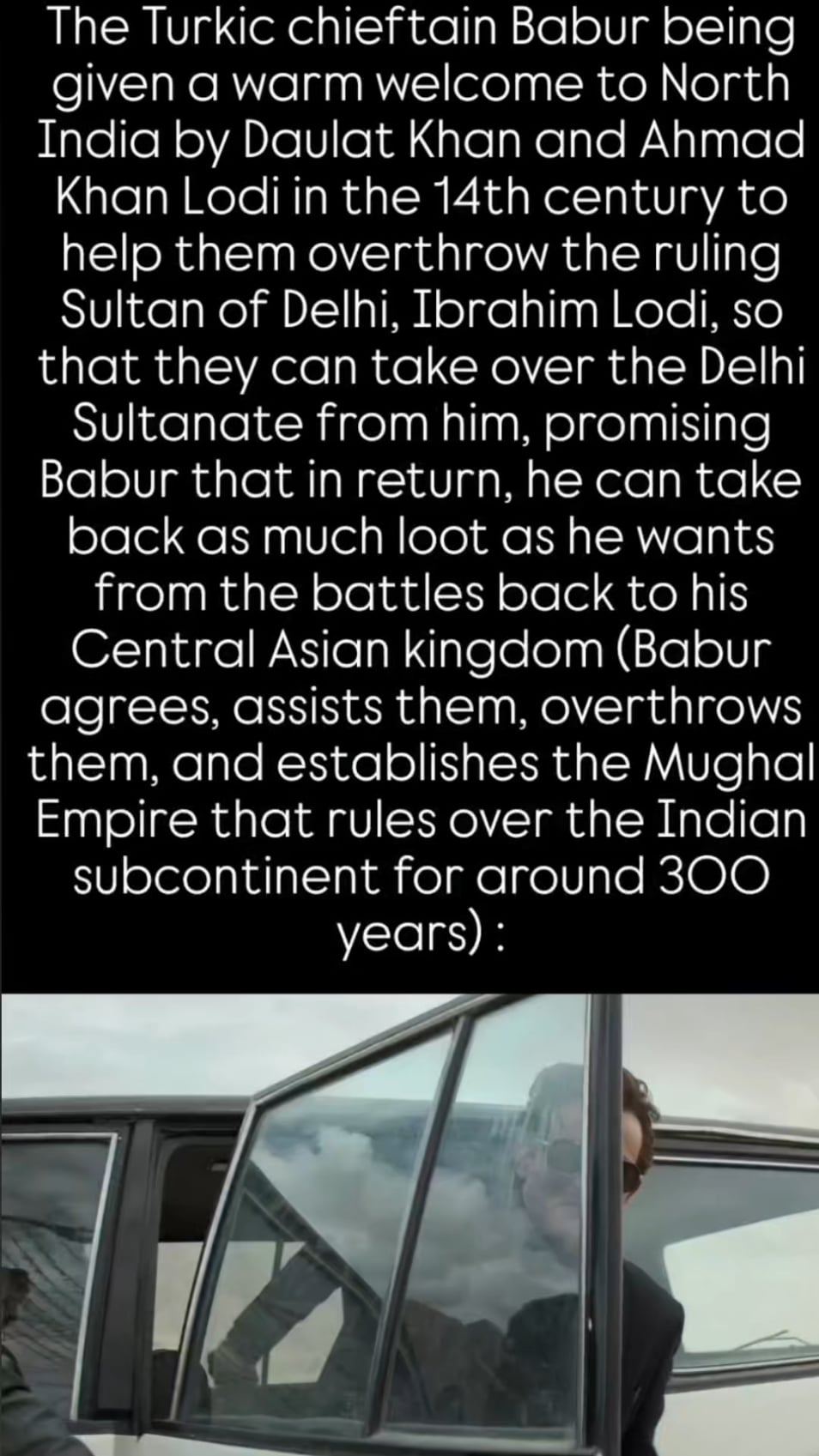 Daulat Khan and Ahmad Khan Lodi: “We paid you a fortune” Babur: “And this gives you power over me?”