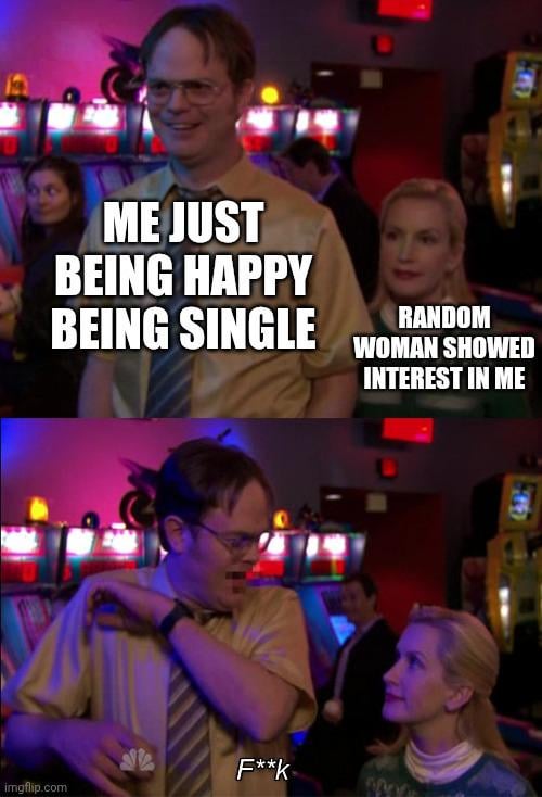 I only just started being happy with how I was single but what’s funny is the second that happened my girlfriend confessed to having feelings for me, honestly couldn’t be happier but its kinda funny that happened