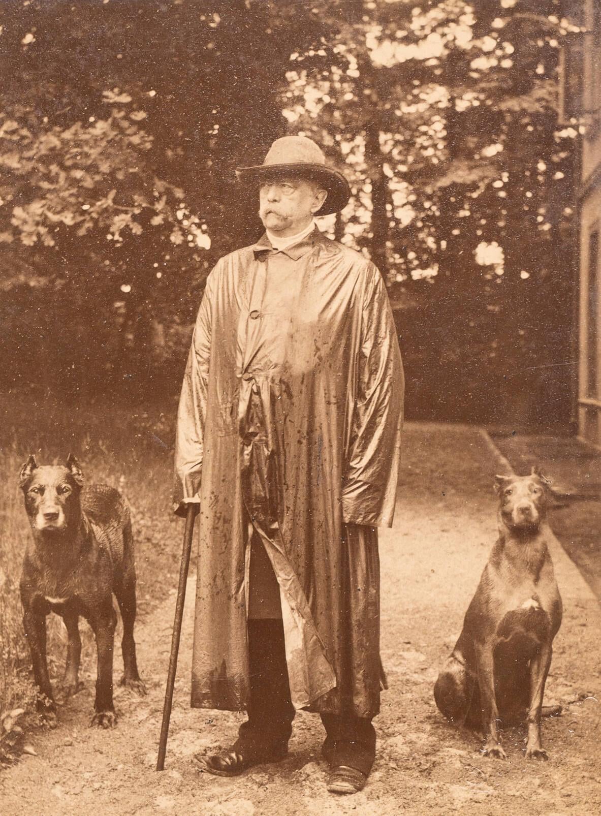 German chancellor Otto Von Bismarck and his mastiffs, 1886. They were known for being fiercely protective of their owner, and at the 1878 Congress of Berlin one of them attacked the Russian chancellor, Alexander Gorchakov (1606×1138)