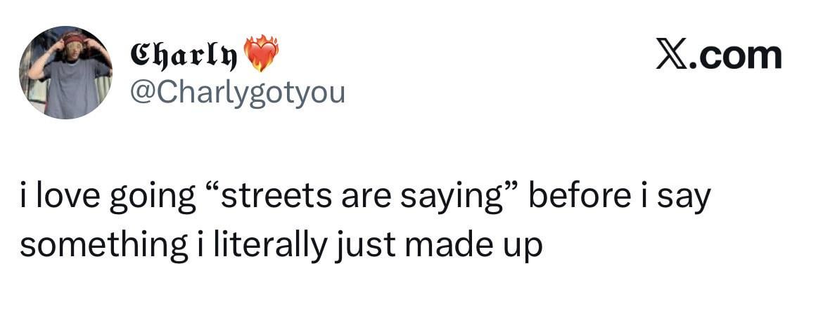 I am the stI am the streets. Therefore, if I said it, the streets have officially spoken.reets. Therefore, if I said it, the streets have officially spoken.