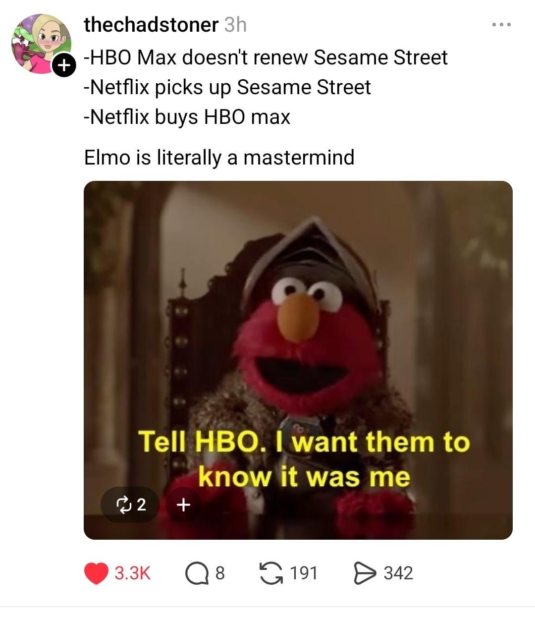 I’m just so glad we’re talking about real Elmo and not that other guy who sometimes gets disparagingly referred to that way.