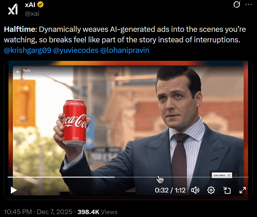 I imagine the law suits now due to Pepsi paying for a product placement and coke paying to AI it. The character looks at the screen “mmmmm…..Brown carbonated beverage”
