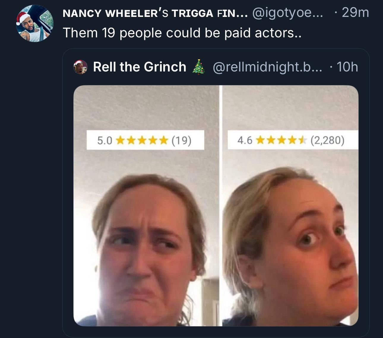 19 five-star reviews is almost always made by family, subordinates, and friends of whoever owns the business. You can still fake a high number with bots, but I think the algorithms are pretty decent at catching them.