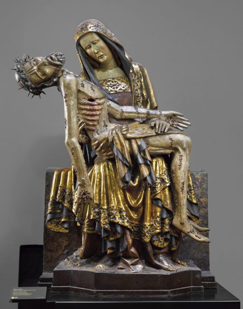 Pietà of the Lubiąż Abbey (1360-1370), unknown Silesian or German artist, polychrome linden wood, in the collection of the National Museum in Warsaw. [804×1024]