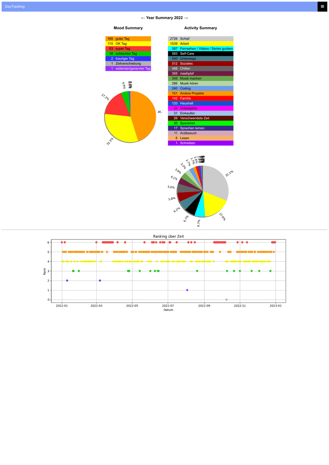 So basically, I started tracking my daily mood every day since 2018 and my hourly activities since 2021 in a self-written webapp. (The webapp will eventually be open-source, but rn it’s only for myself sry)