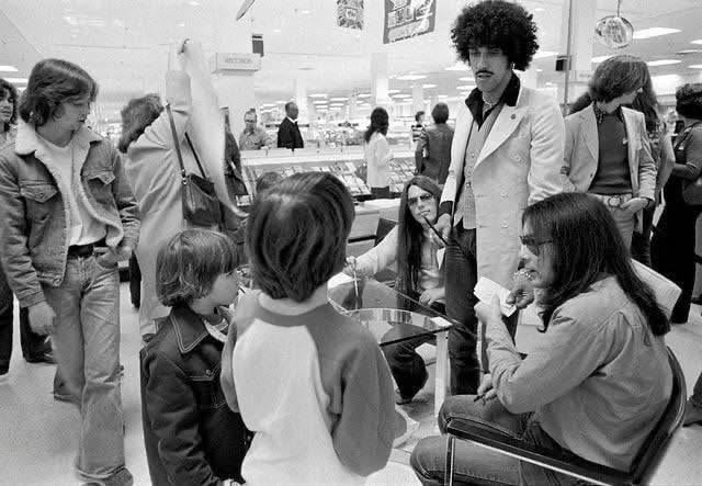 Thin Lizzy signing autographs at a J.C. Penney store in Atlanta, 1977.